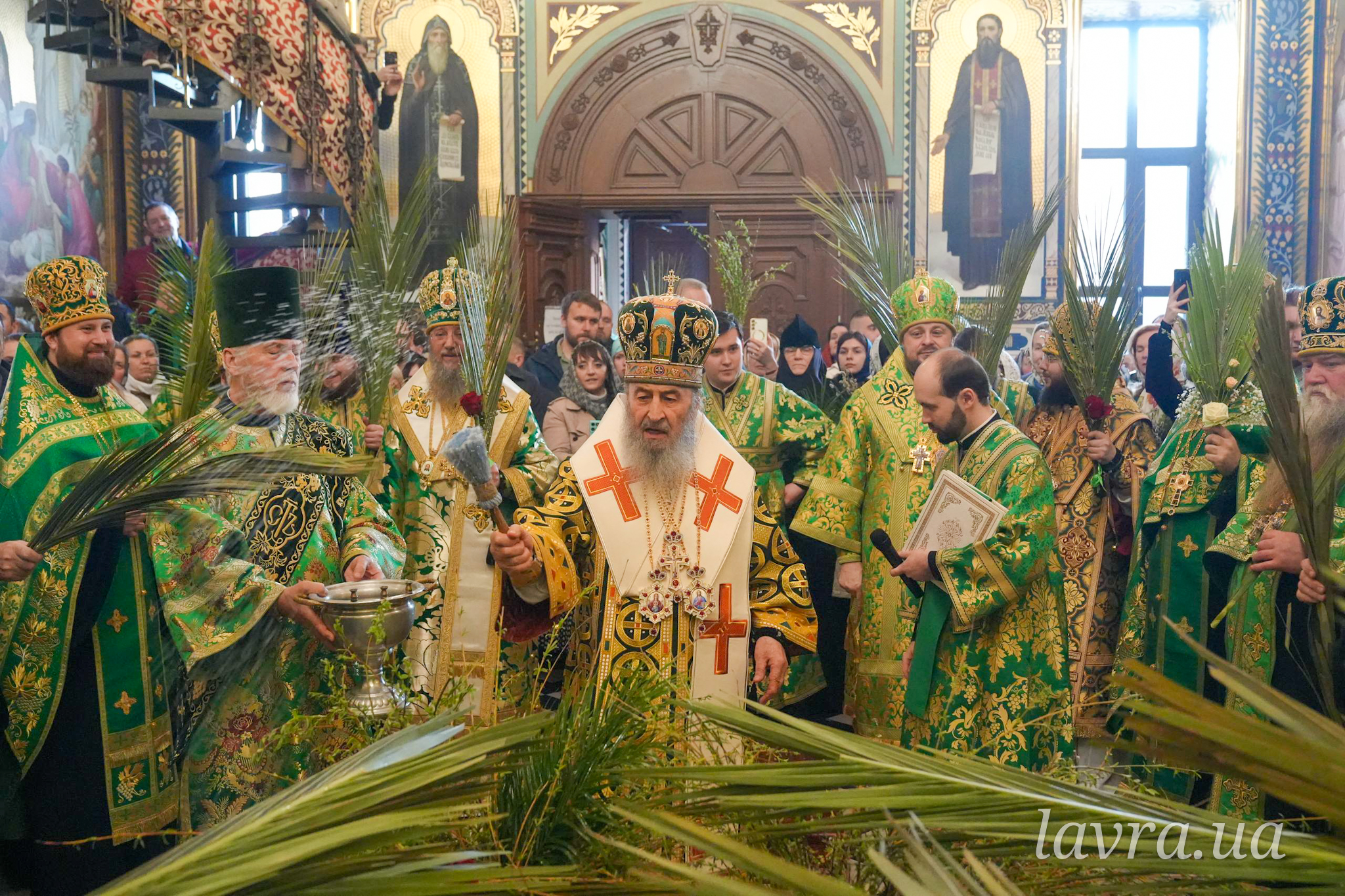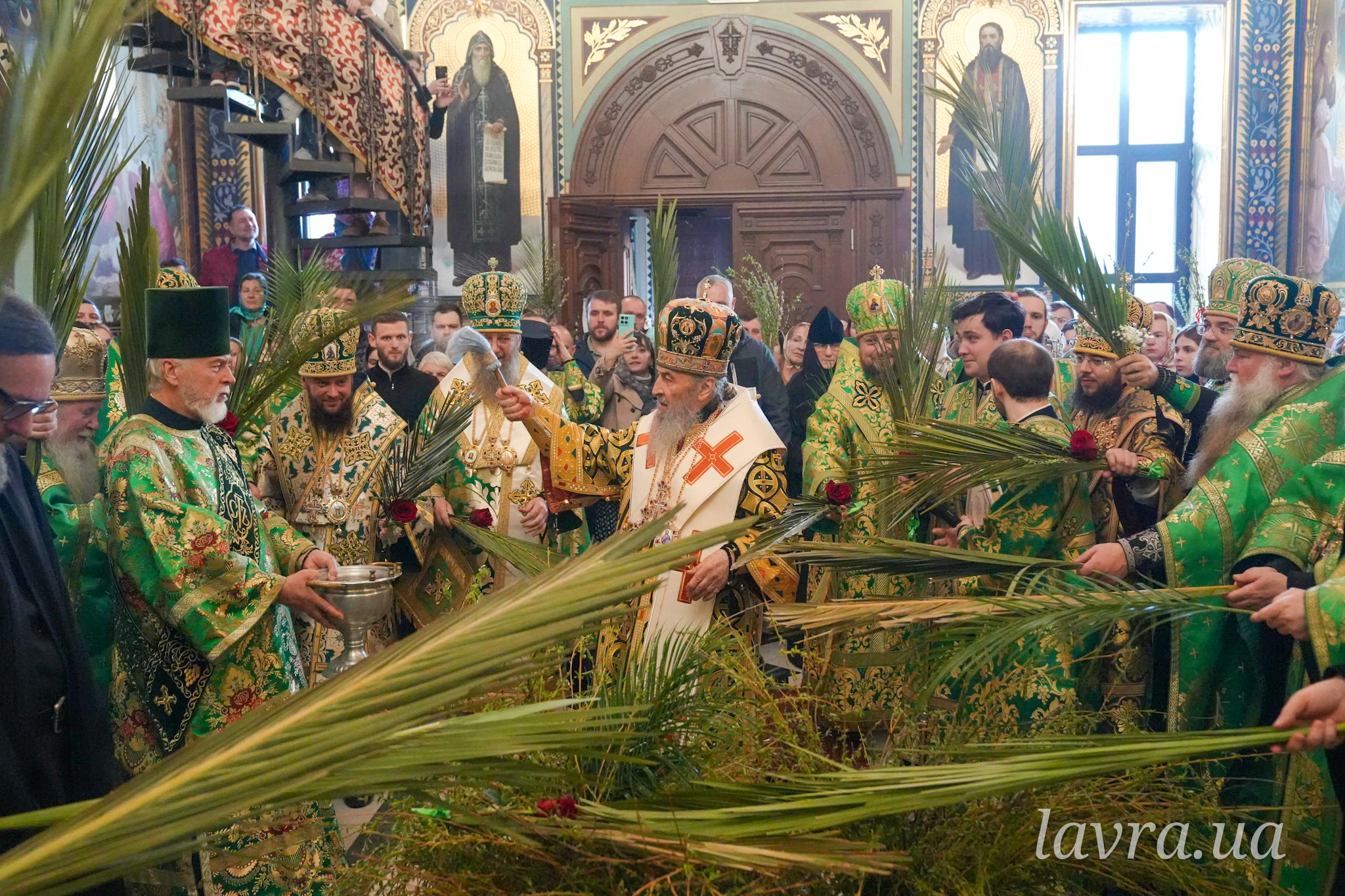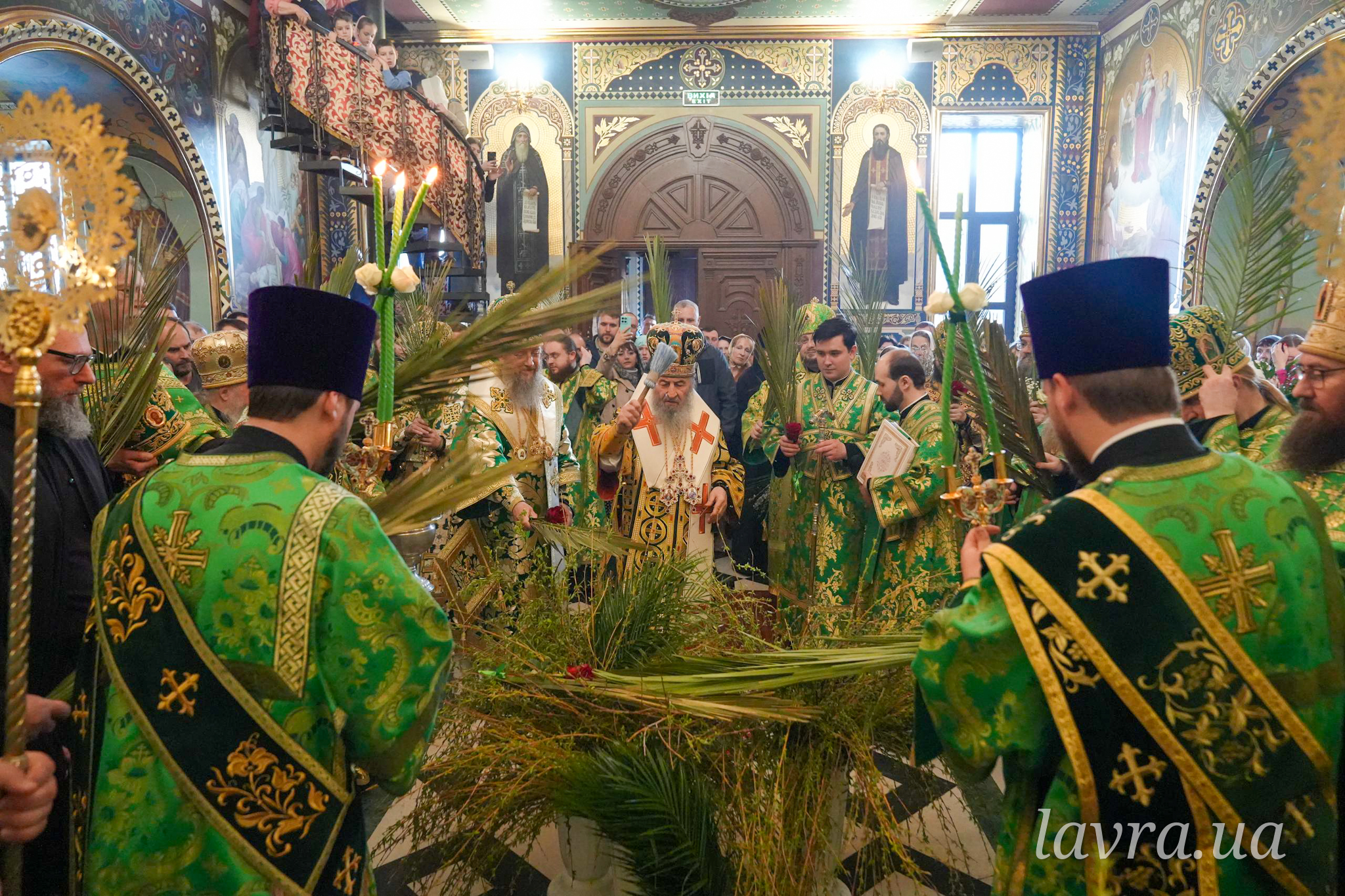 По завершенні Літургії Предстоятель Української Православної Церкви освятив гілки верби та окропив усіх присутніх святою водою, а також подякував співслужителям-архієреям і духовенству за молитви, привітав причасників із прийняттям Животворящих Таїн Христових і покликав на паству Боже благословення.