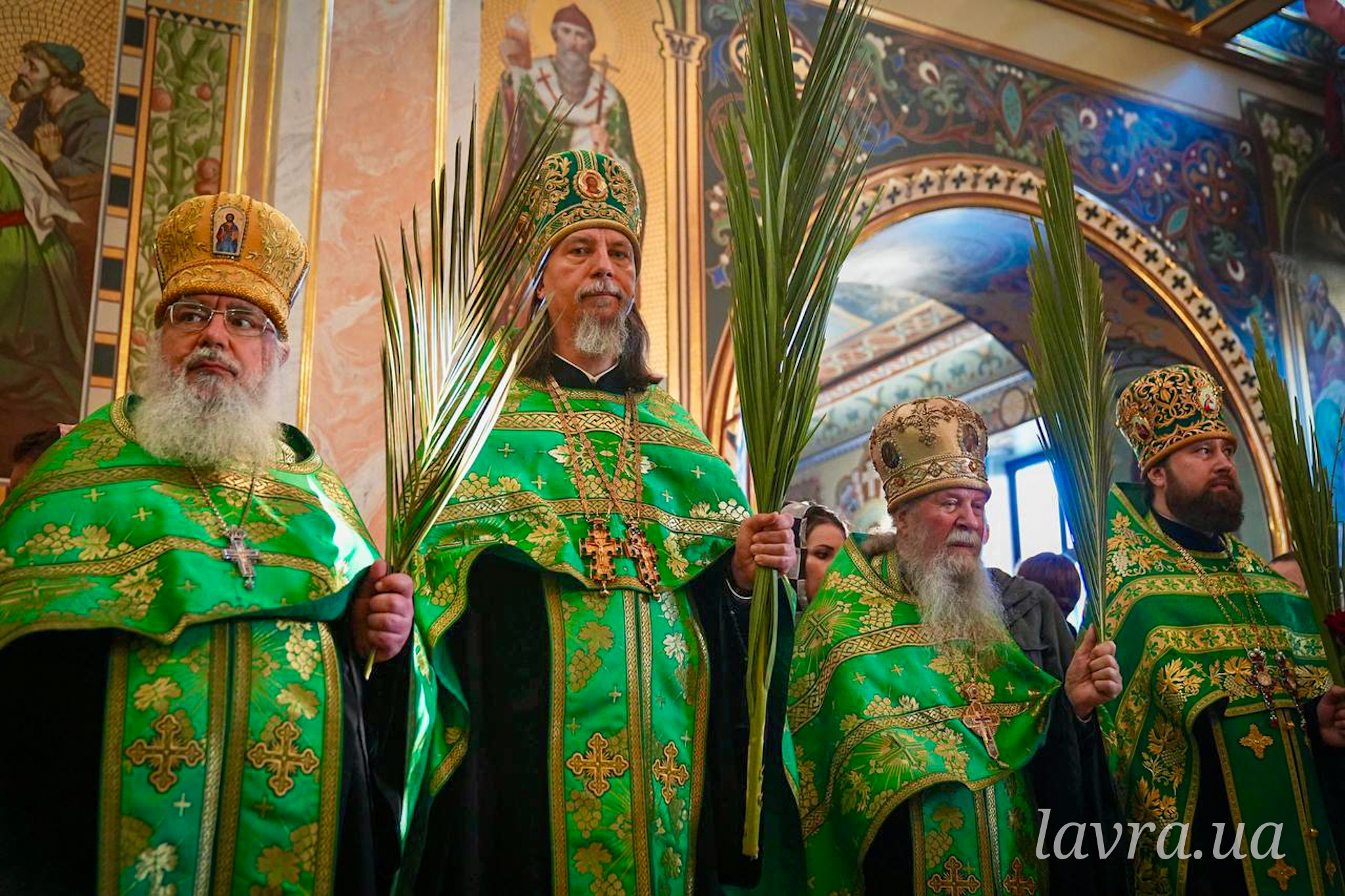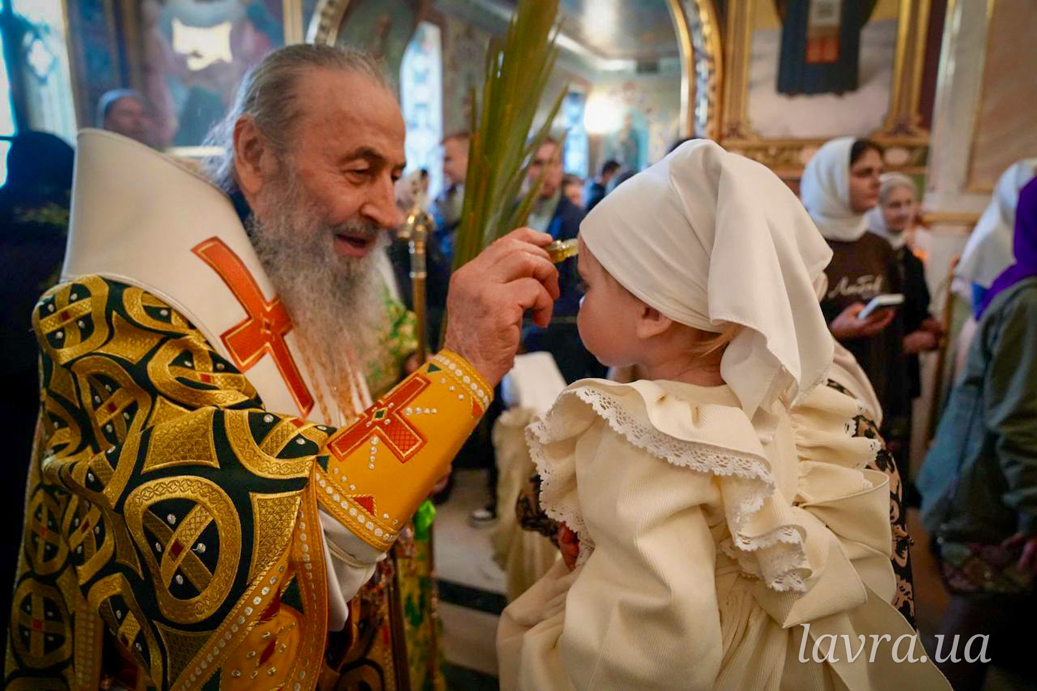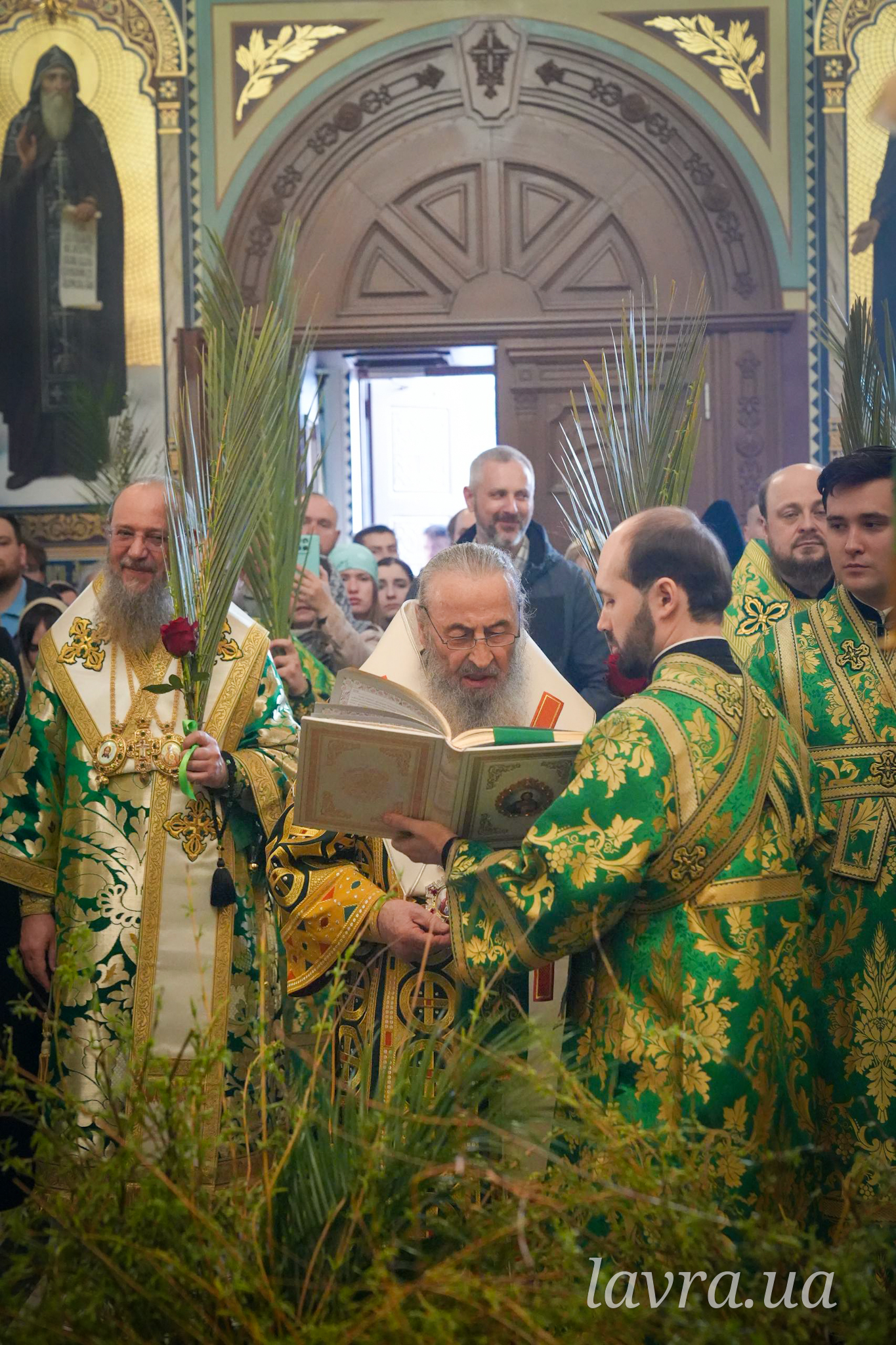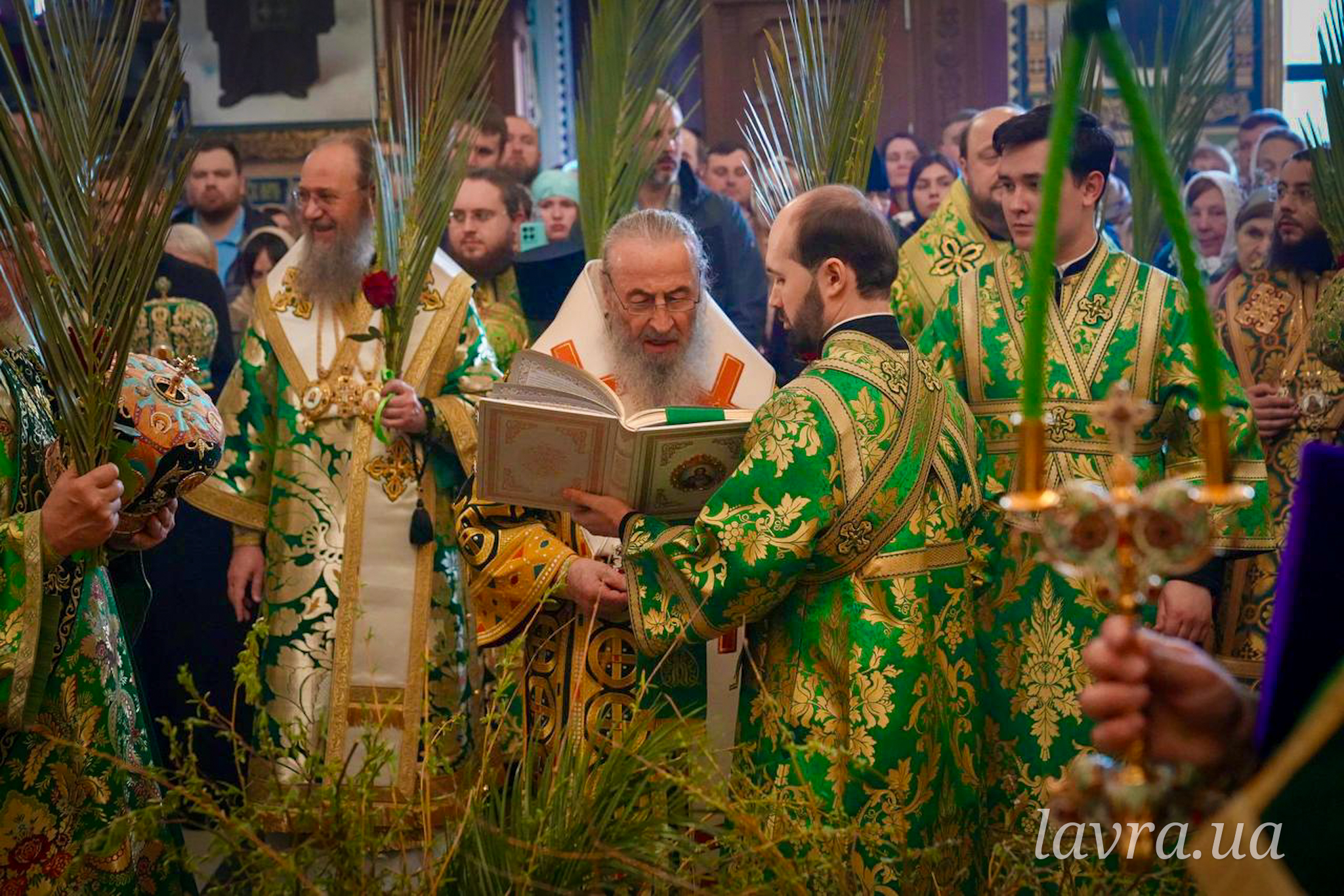 По завершенні Літургії Предстоятель Української Православної Церкви освятив гілки верби та окропив усіх присутніх святою водою, а також подякував співслужителям-архієреям і духовенству за молитви, привітав причасників із прийняттям Животворящих Таїн Христових і покликав на паству Боже благословення.