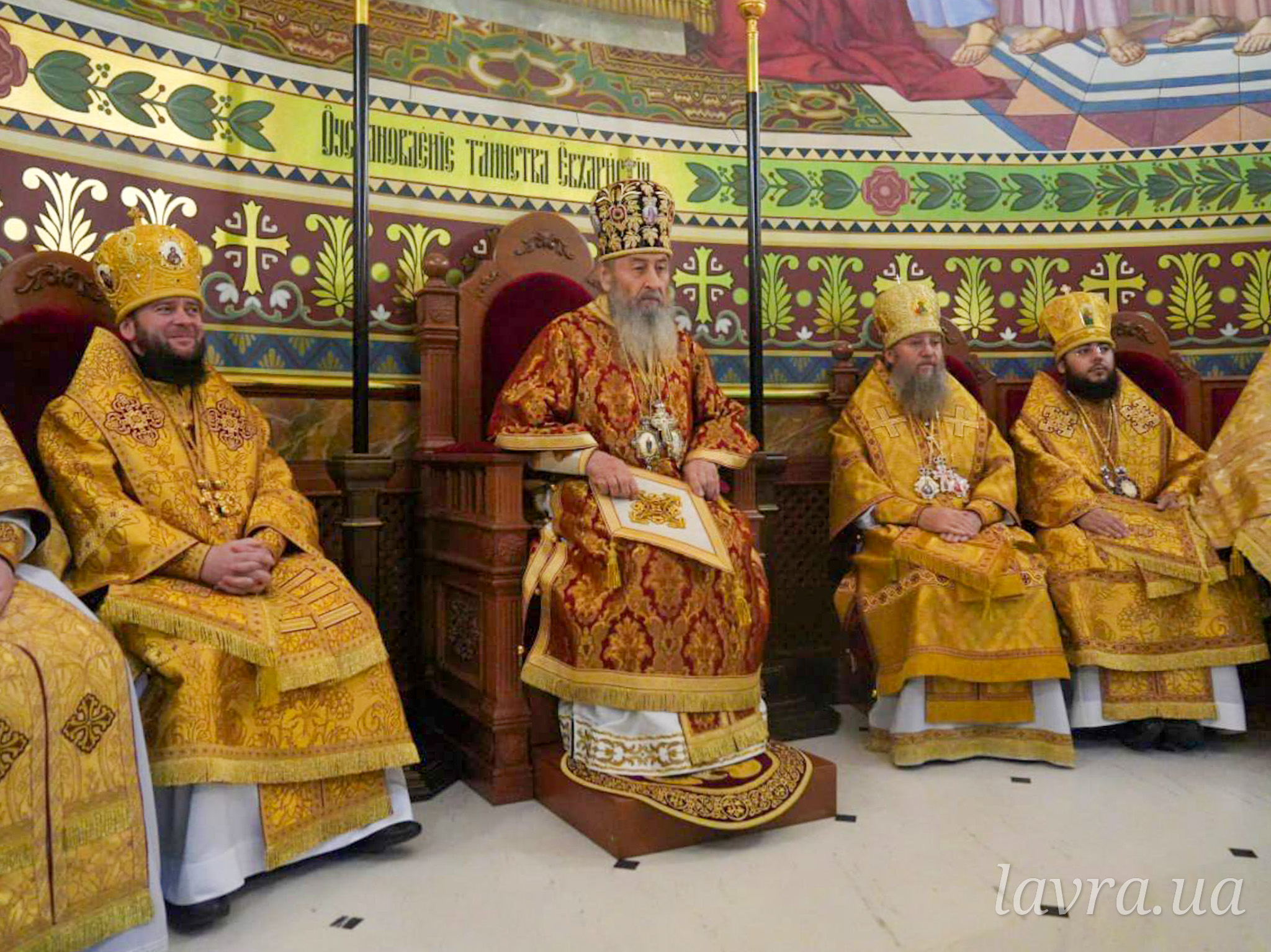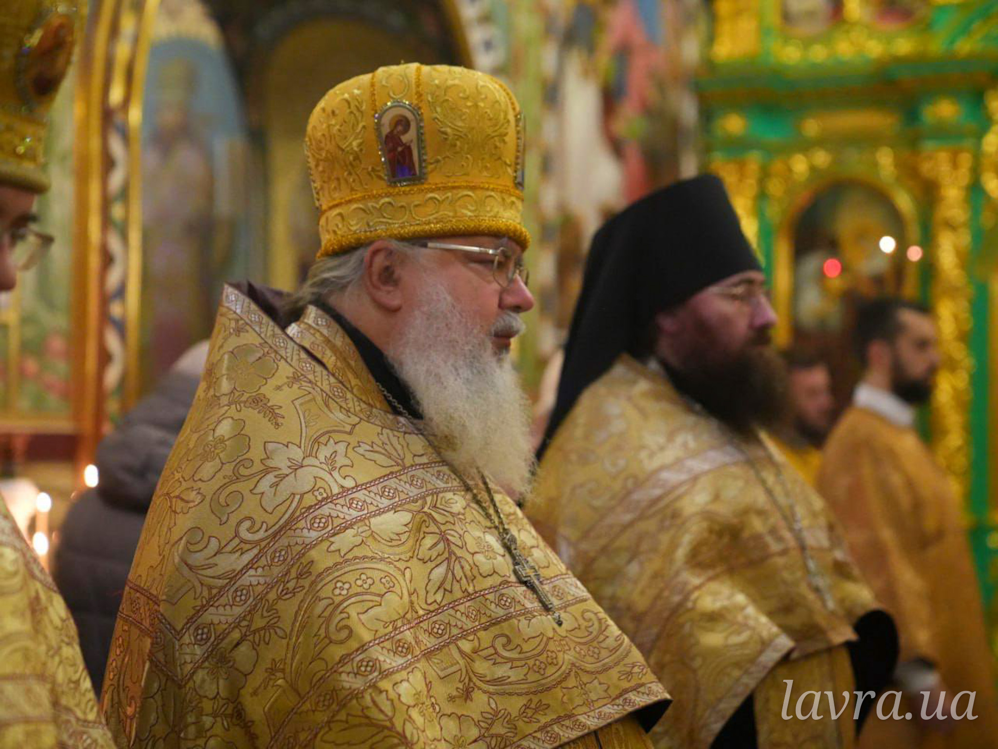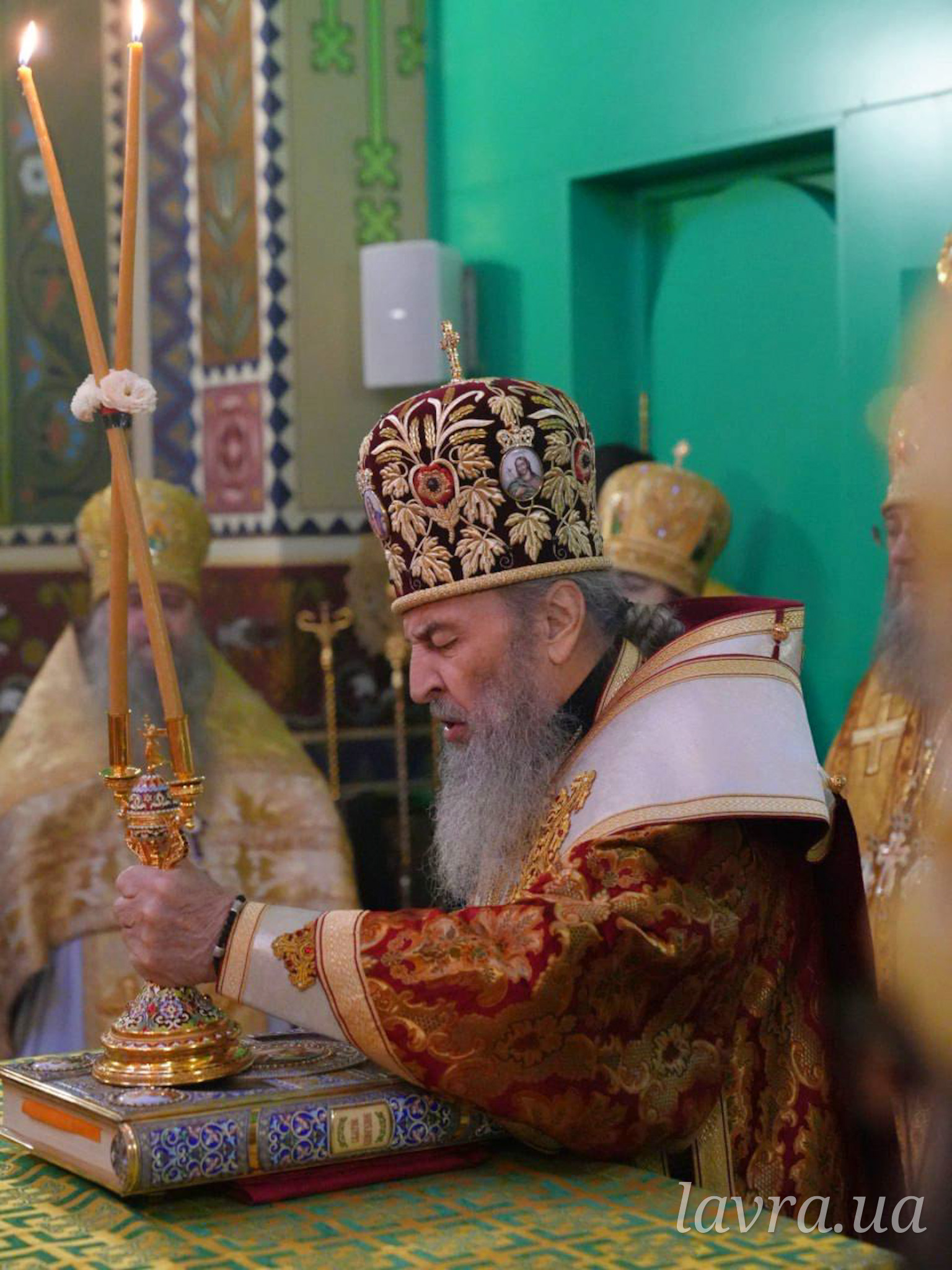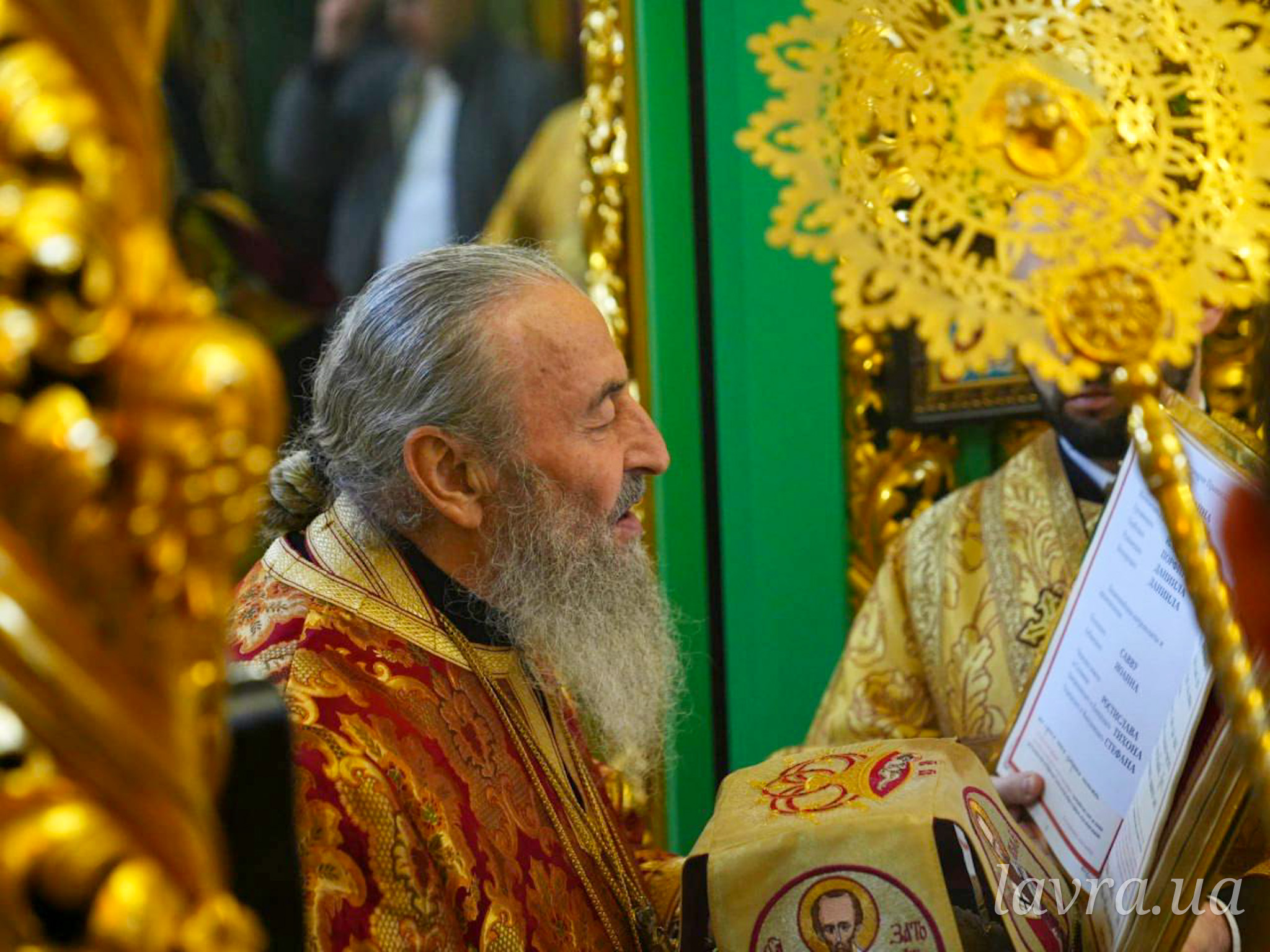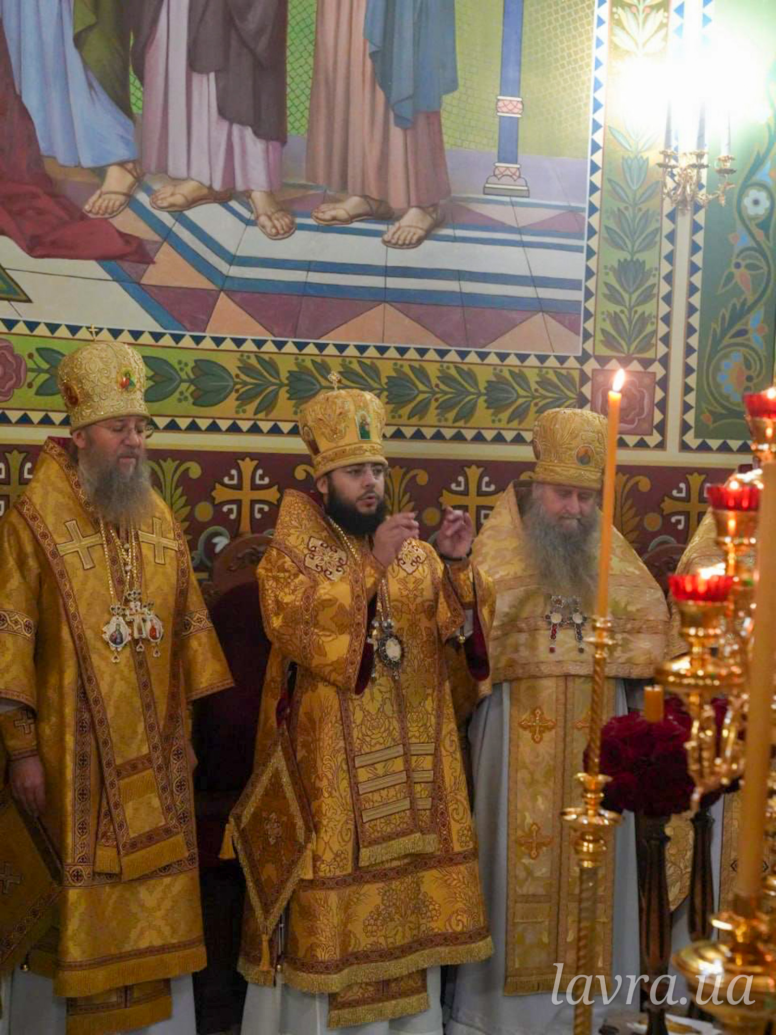 Під час Божественної Літургії Предстоятелю Української Православної Церкви співслужили митрополит Бориспільський і Броварський Антоній, архієпископ Ірпінський Лавр, архієпископ Бородянський Марк, а також братія і гості обителі у священному сані. Напередодні ввечері всеношну очолив керуючий справами УПЦ.