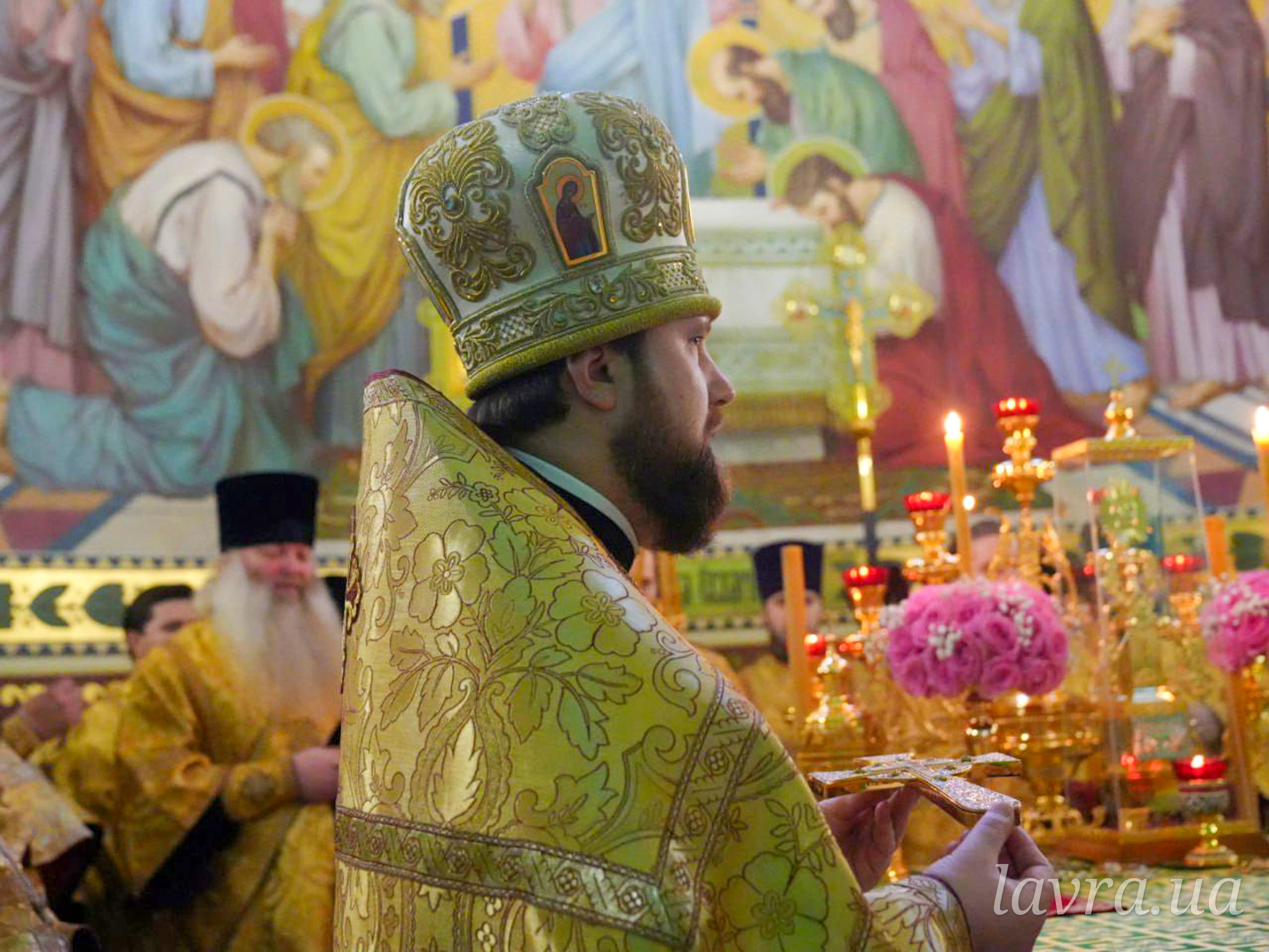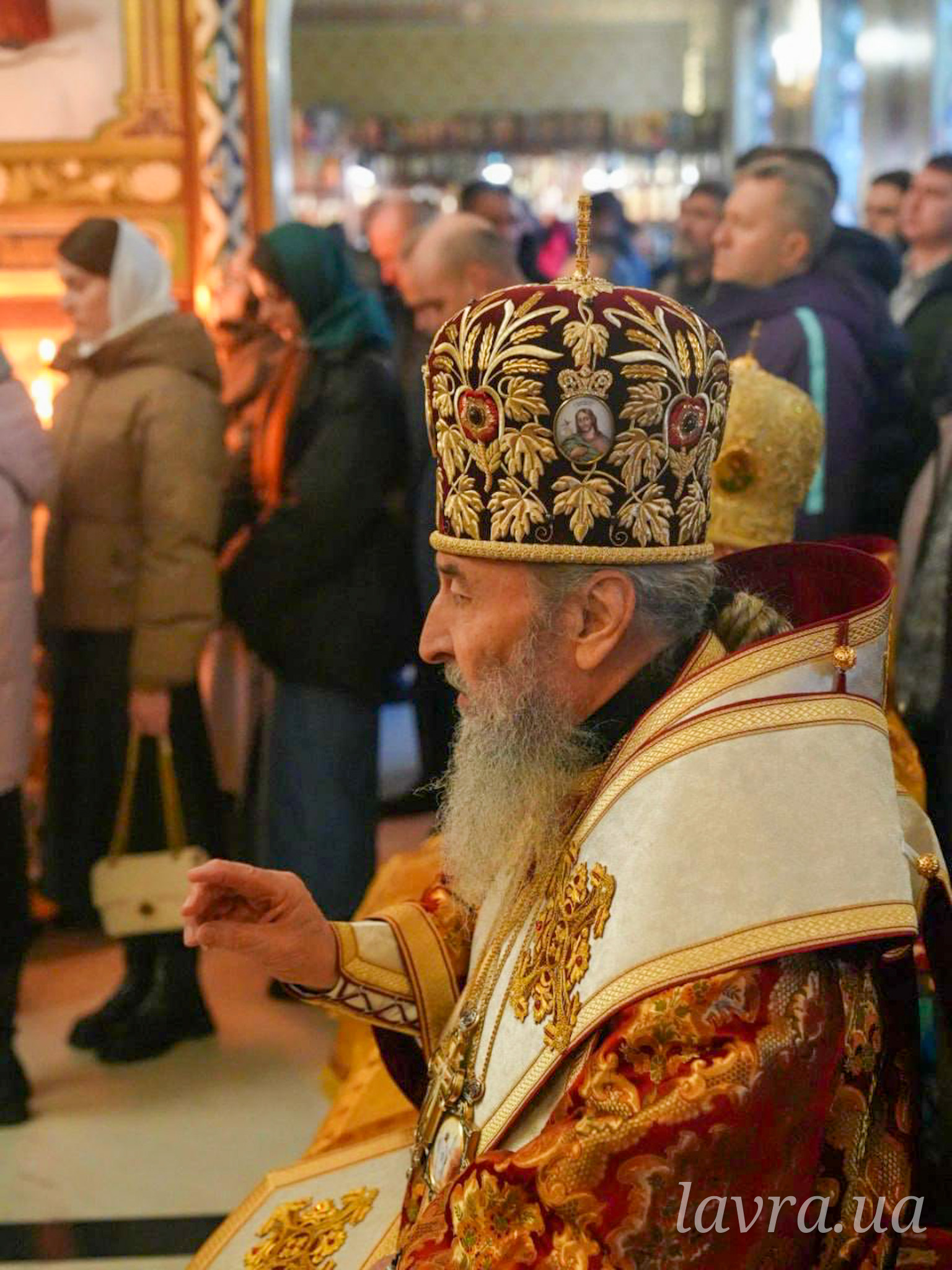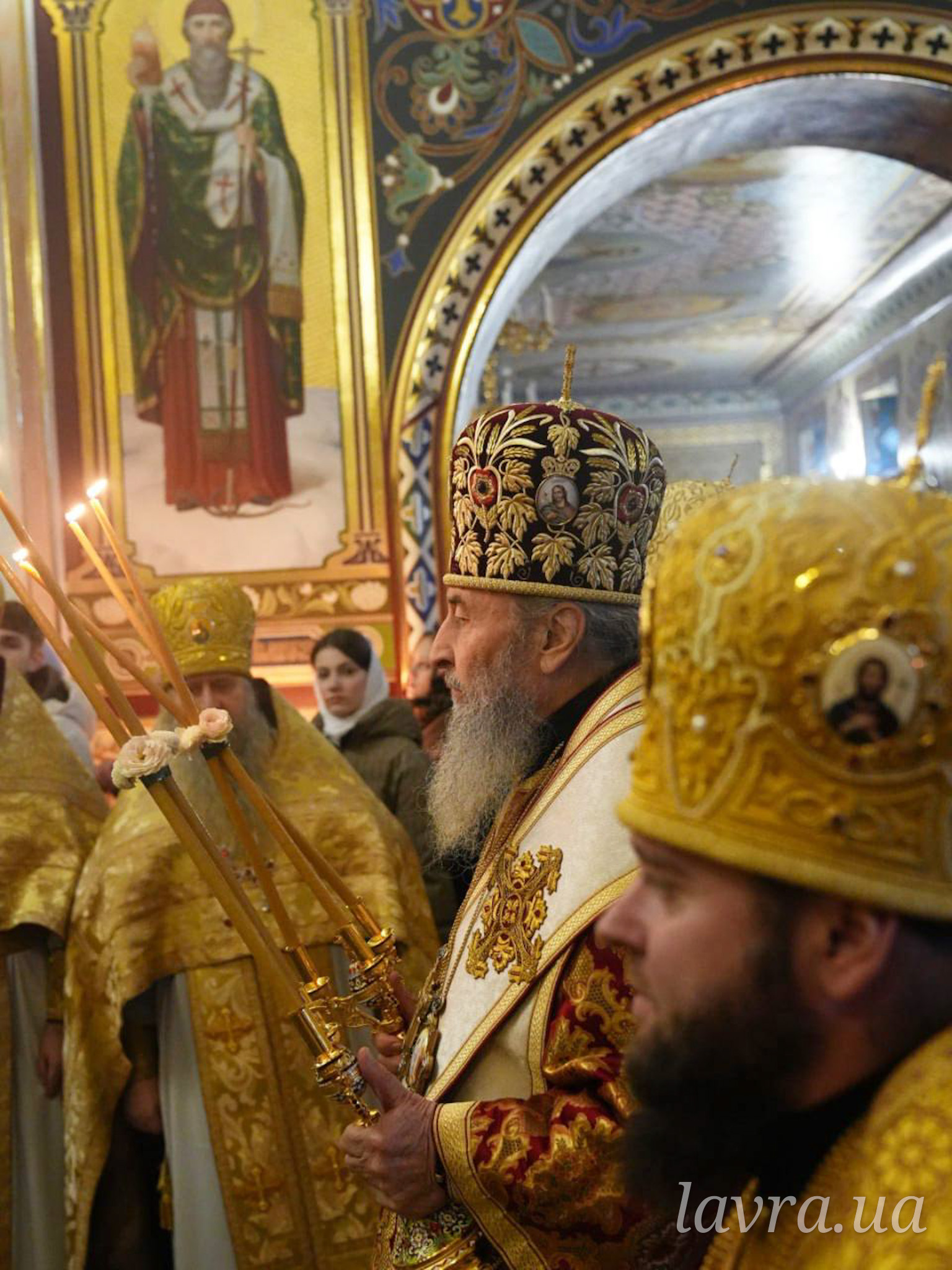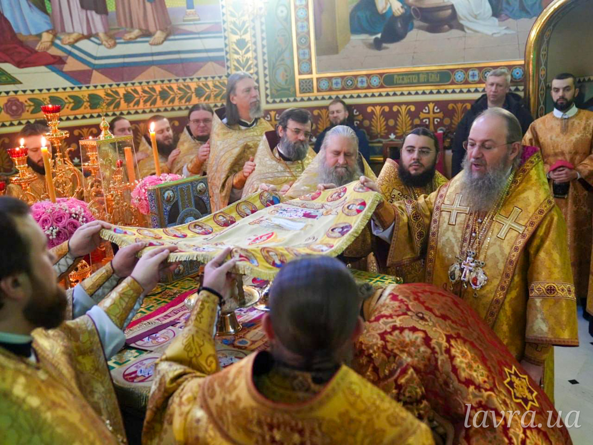 Під час Божественної Літургії Предстоятелю Української Православної Церкви співслужили митрополит Бориспільський і Броварський Антоній, архієпископ Ірпінський Лавр, архієпископ Бородянський Марк, а також братія і гості обителі у священному сані. Напередодні ввечері всеношну очолив керуючий справами УПЦ.