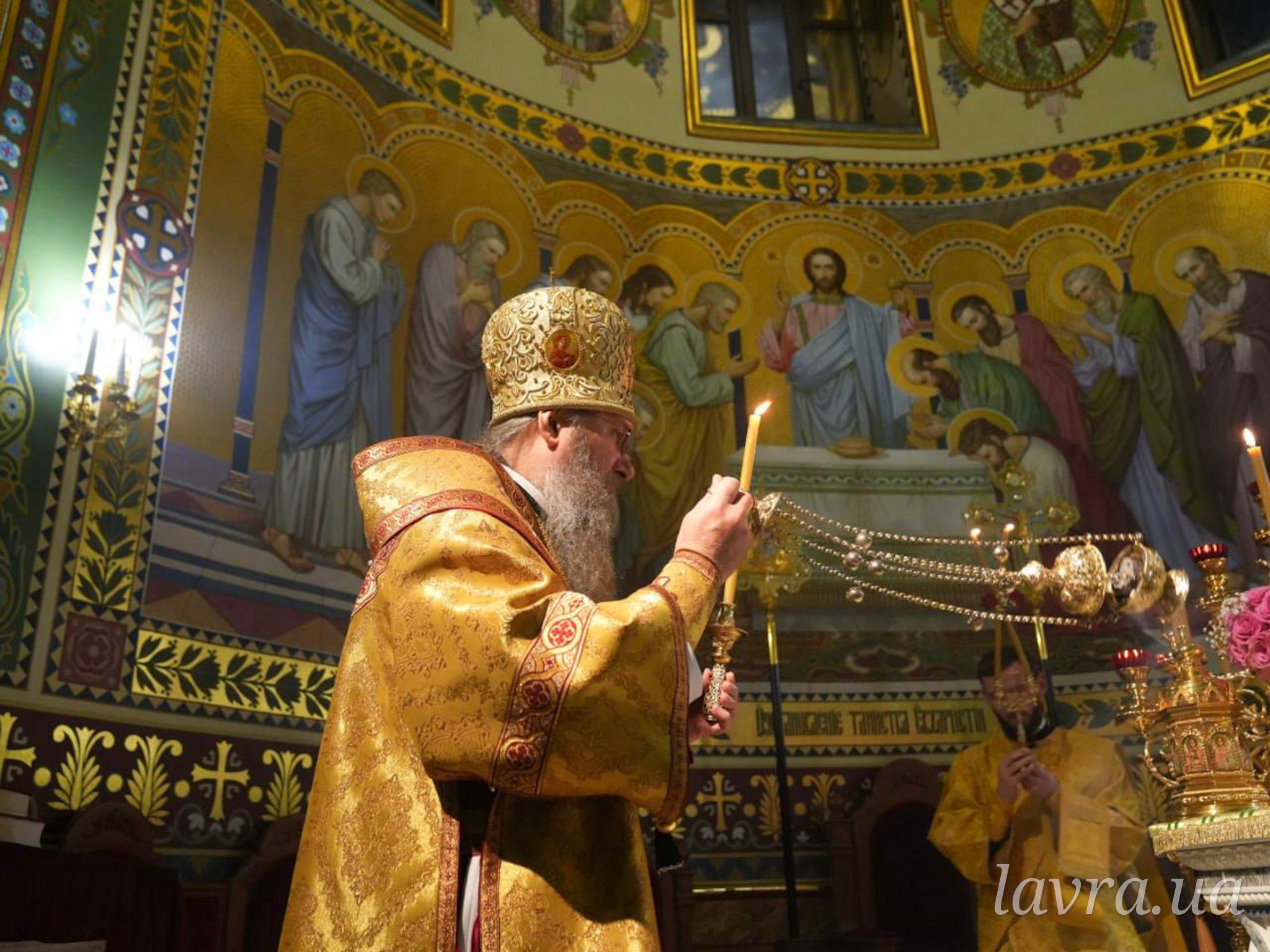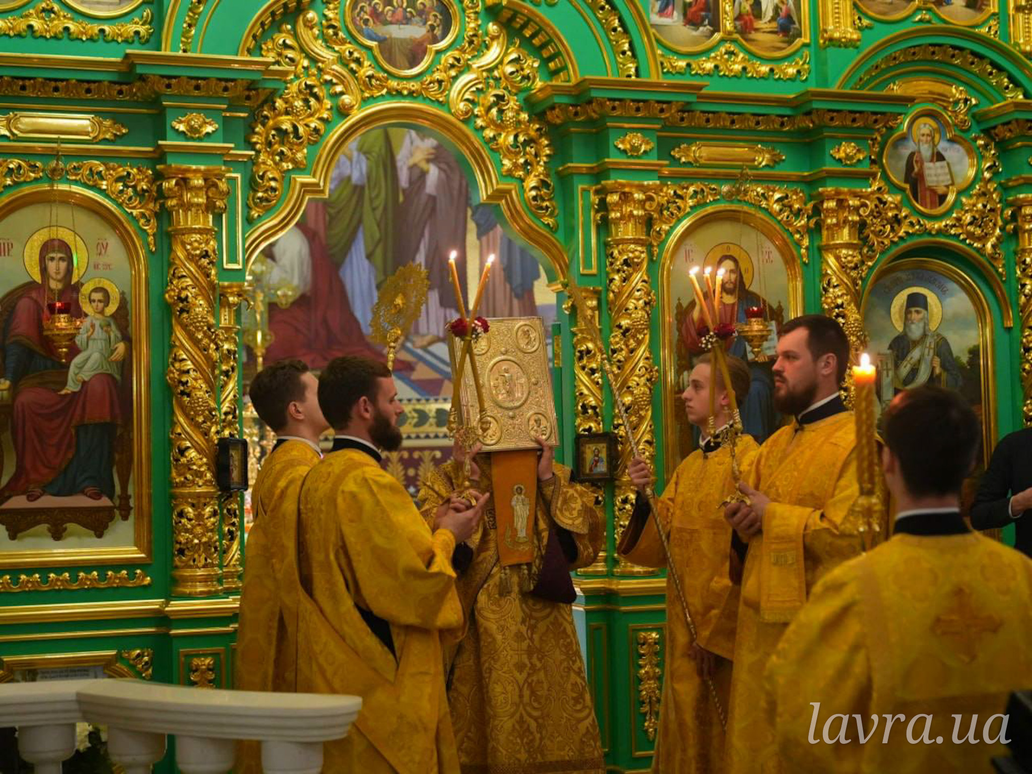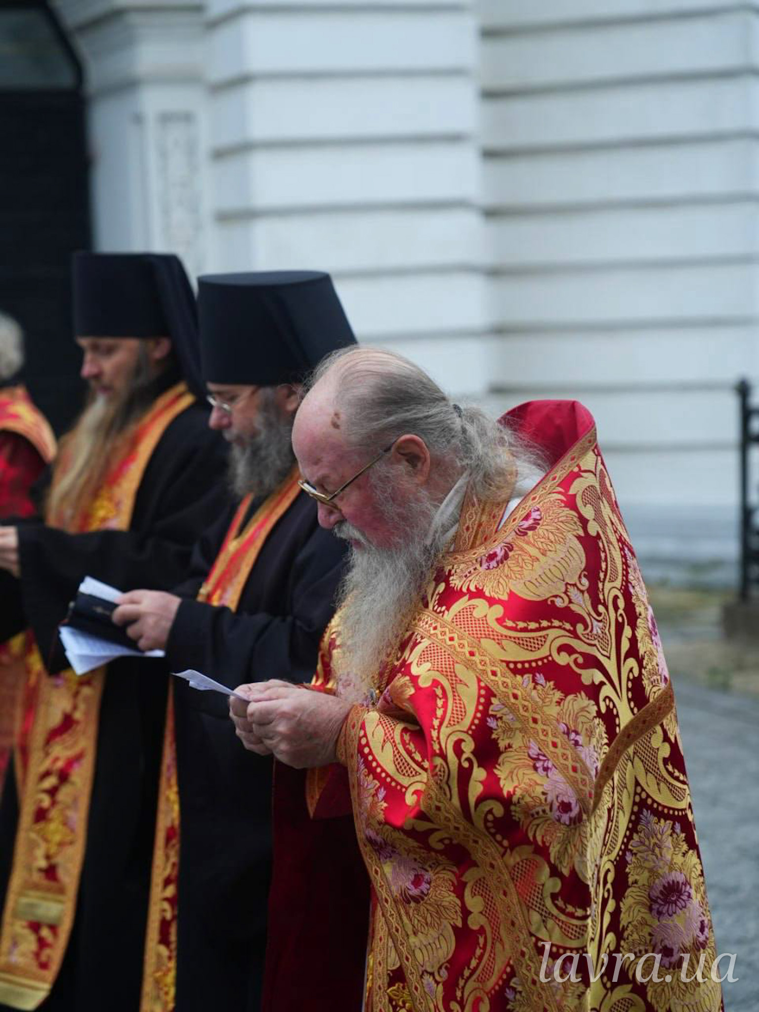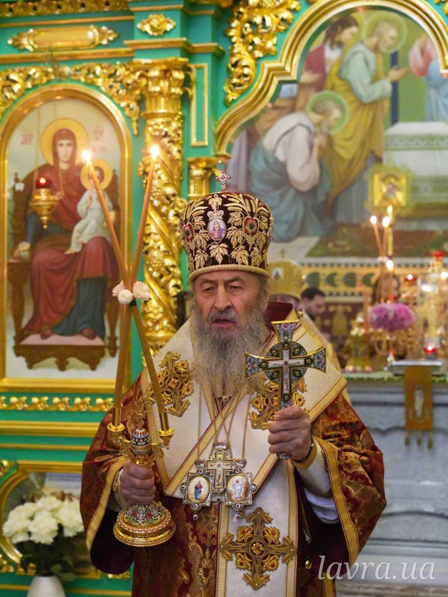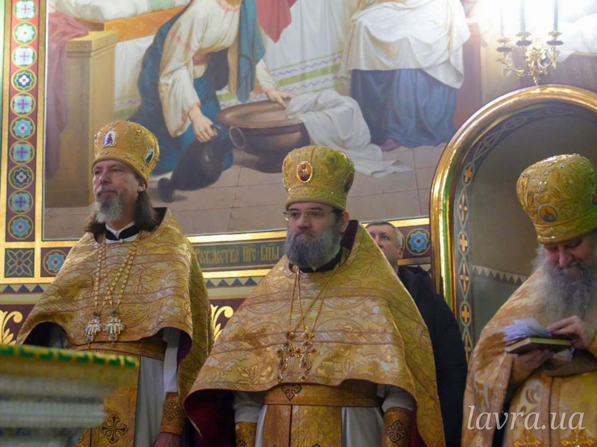 Під час Божественної Літургії Предстоятелю Української Православної Церкви співслужили митрополит Бориспільський і Броварський Антоній, архієпископ Ірпінський Лавр, архієпископ Бородянський Марк, а також братія і гості обителі у священному сані. Напередодні ввечері всеношну очолив керуючий справами УПЦ.