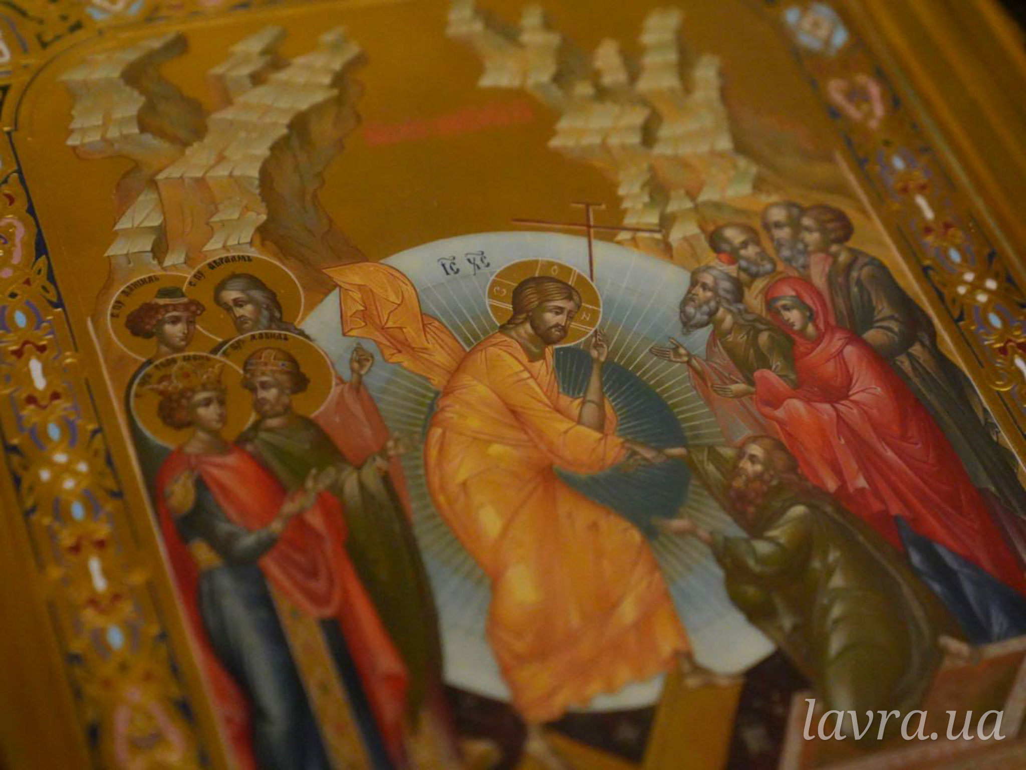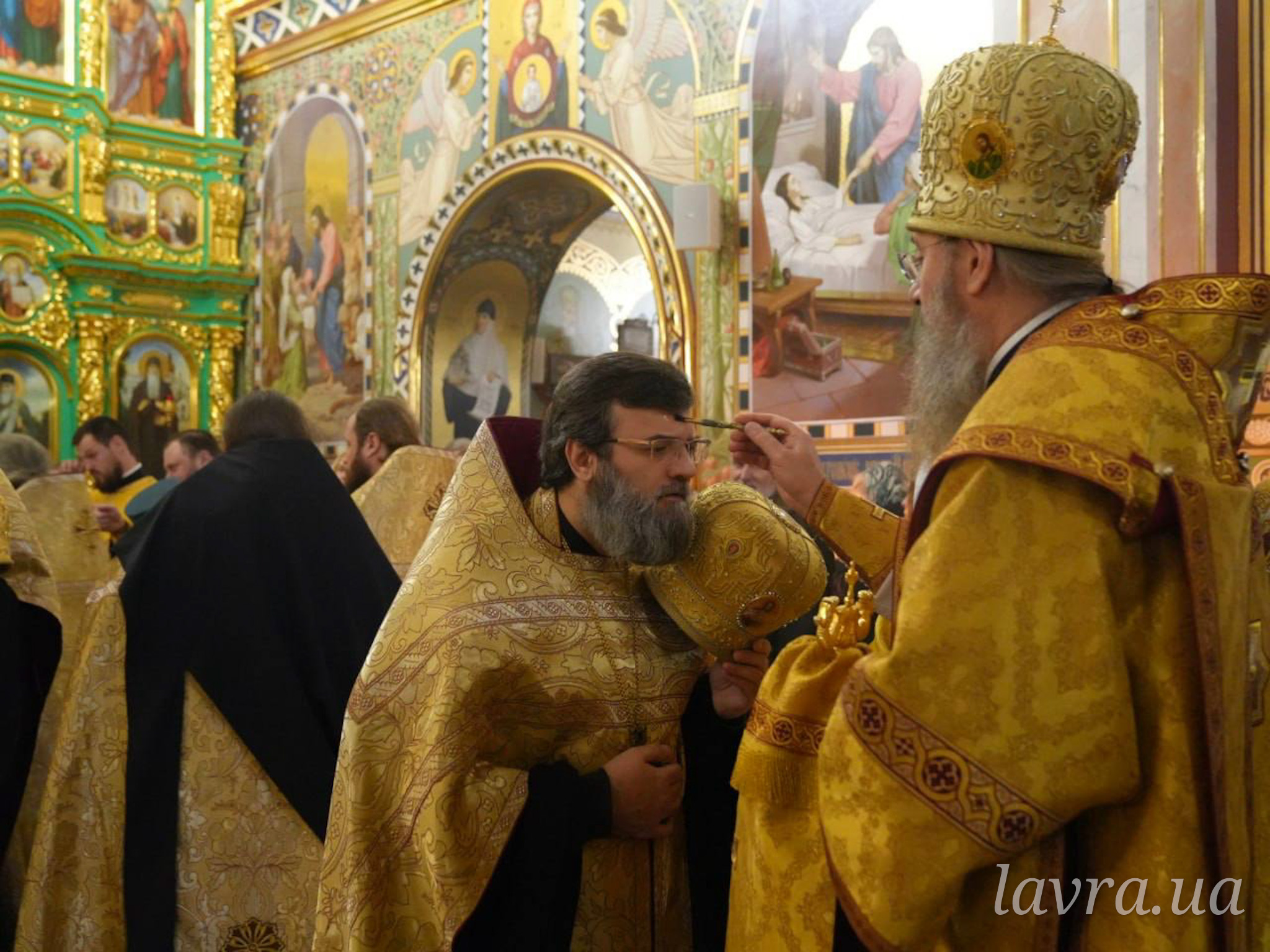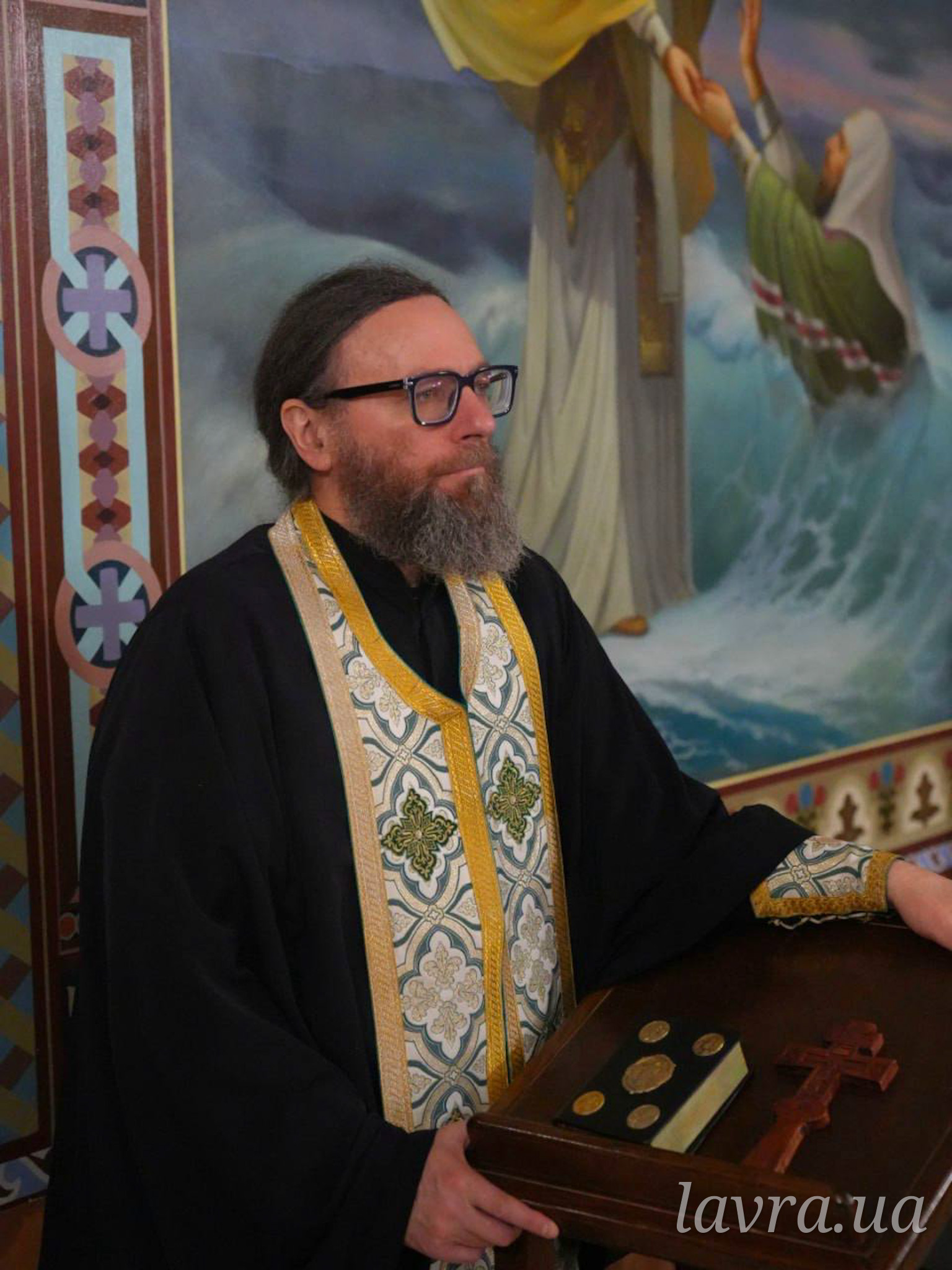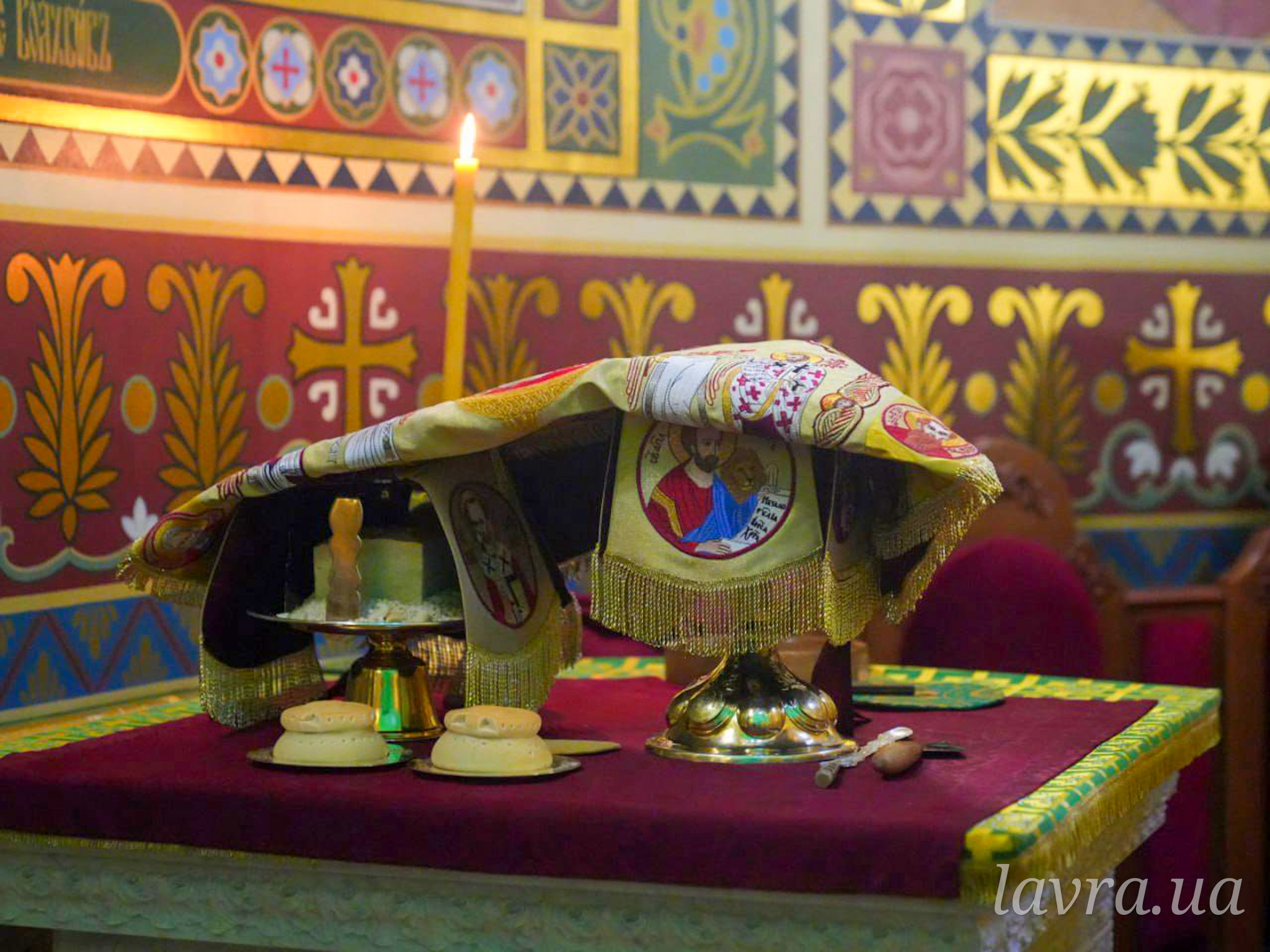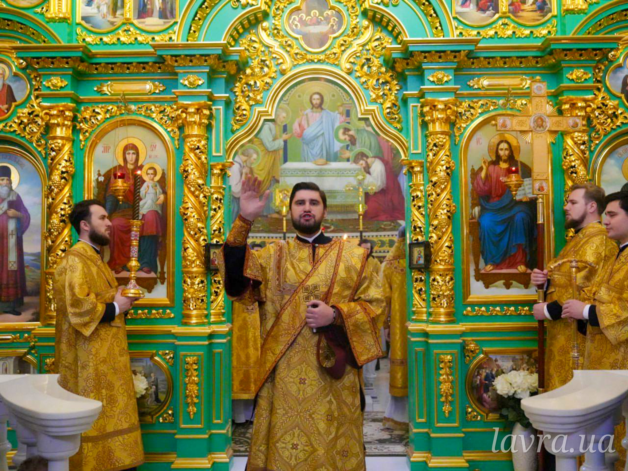 Під час Божественної Літургії Предстоятелю Української Православної Церкви співслужили митрополит Бориспільський і Броварський Антоній, архієпископ Ірпінський Лавр, архієпископ Бородянський Марк, а також братія і гості обителі у священному сані. Напередодні ввечері всеношну очолив керуючий справами УПЦ.