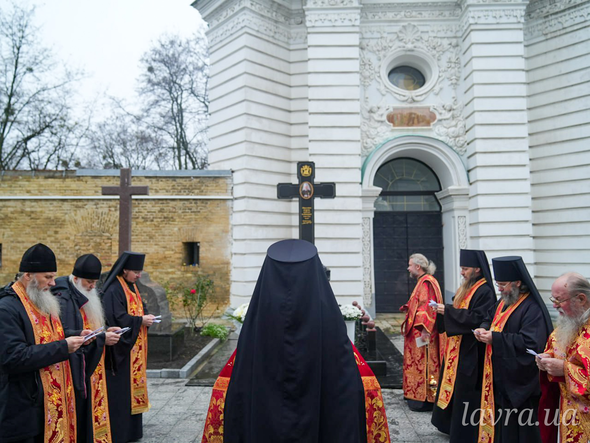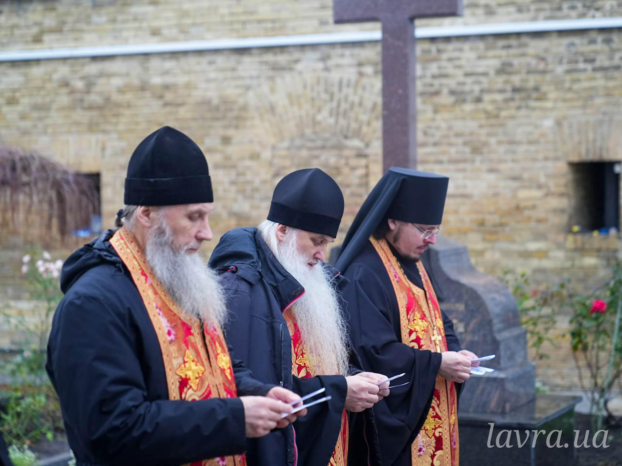 Також заупокійне богослужіння було звершено на братському цвинтарі біля могили приснопам’ятного Першосвятителя. Панахиду очолив скарбник обителі архімандрит Нестор.