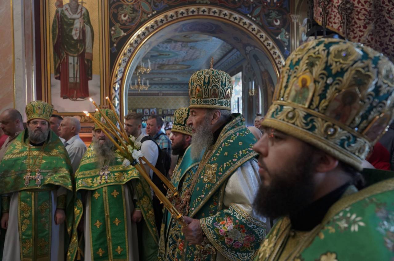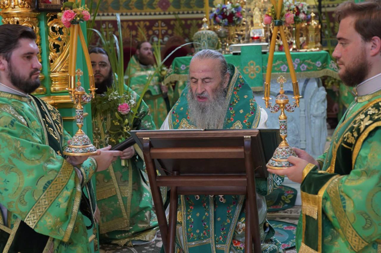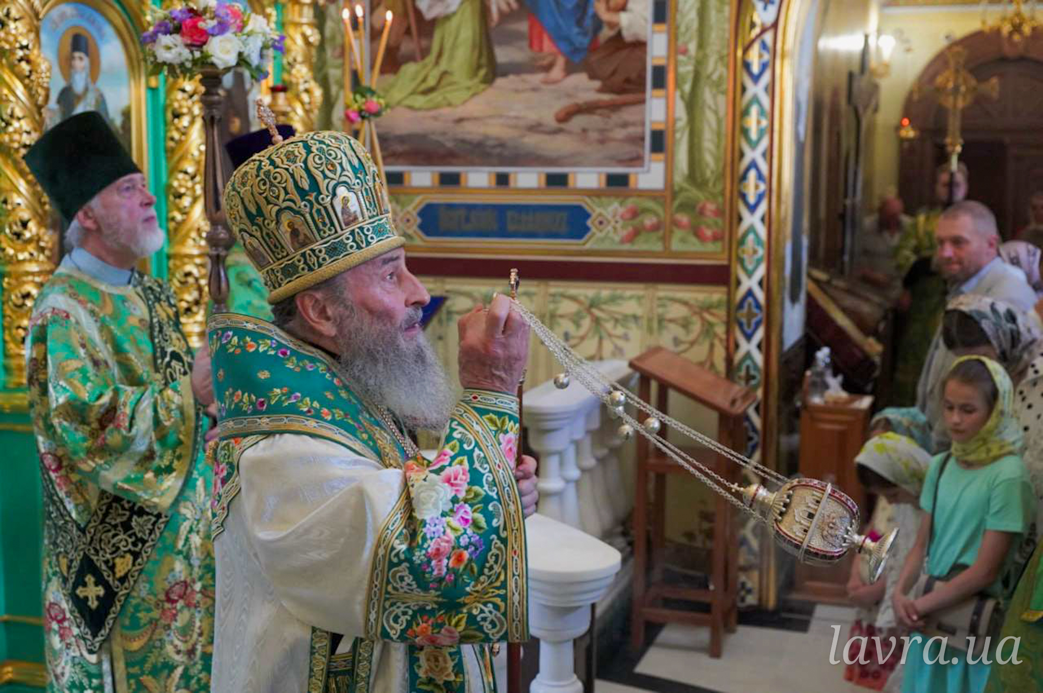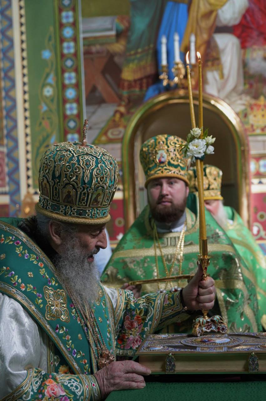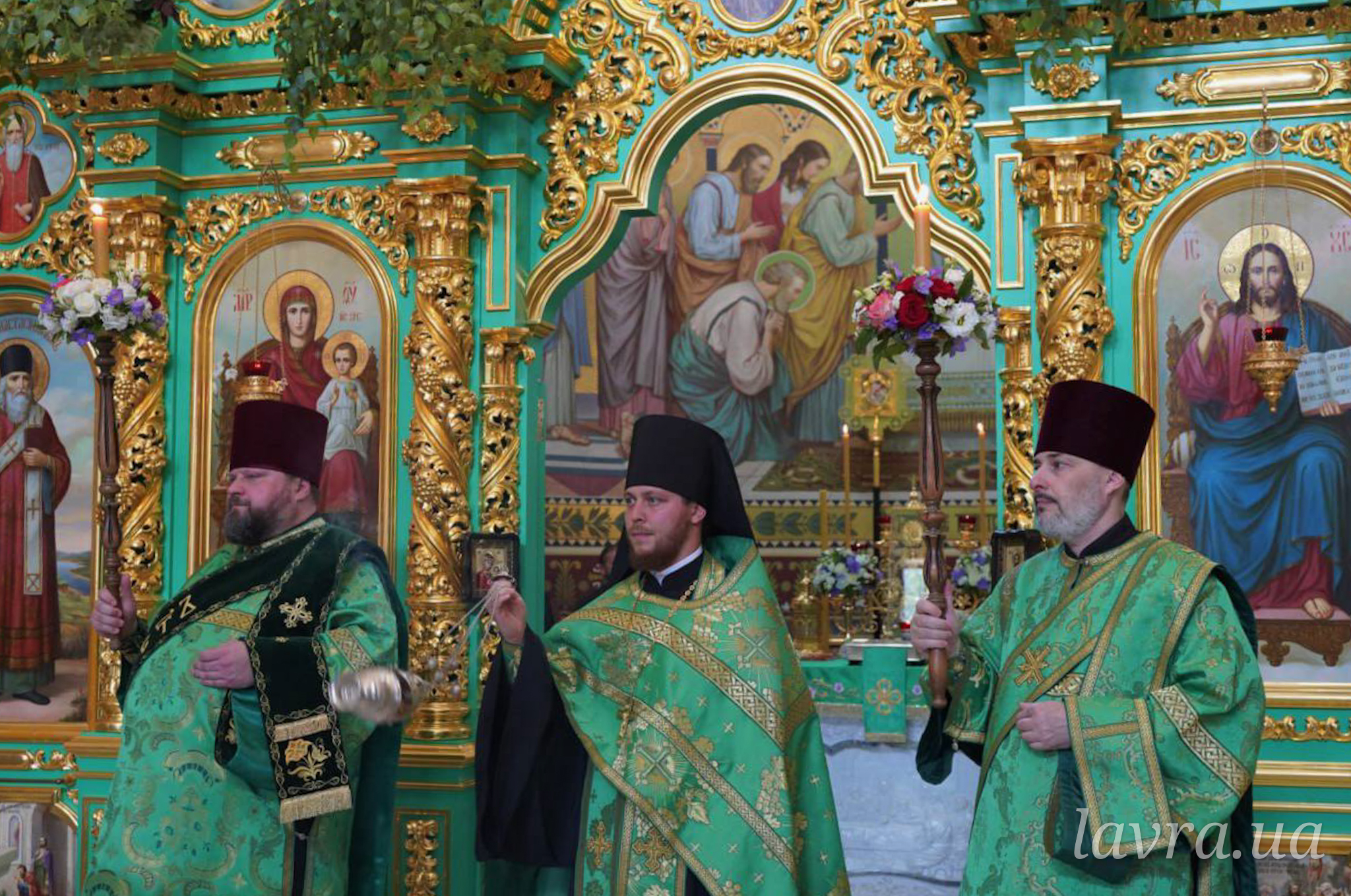 У сам день свята Святої Трійці Божественну Літургію з вечірньою у тому ж храмі звершив Священноархімандрит Святої Печерської обителі Блаженніший Митрополит Онуфрій у співслужінні преосвященних архієреїв, братії та гостей монастиря у священному сані.