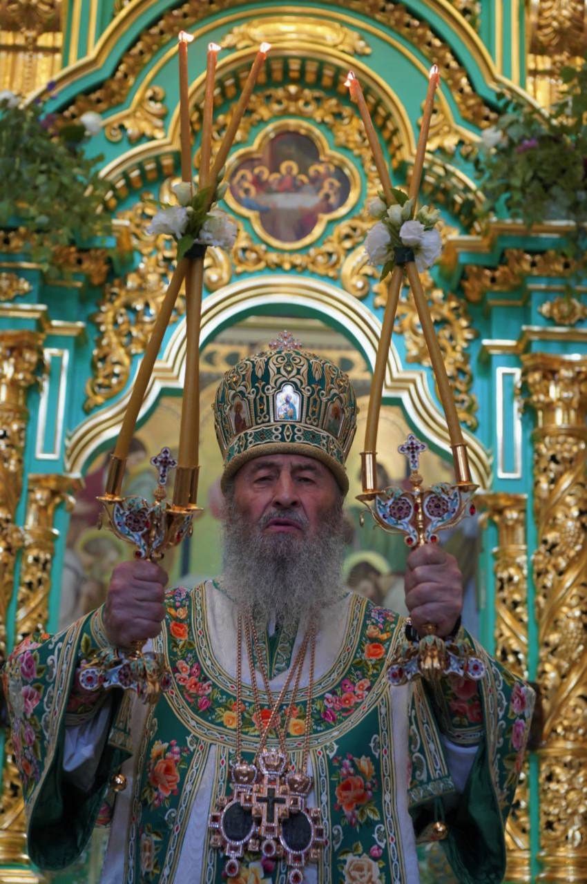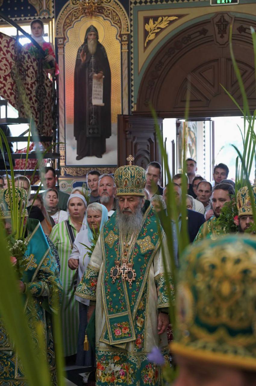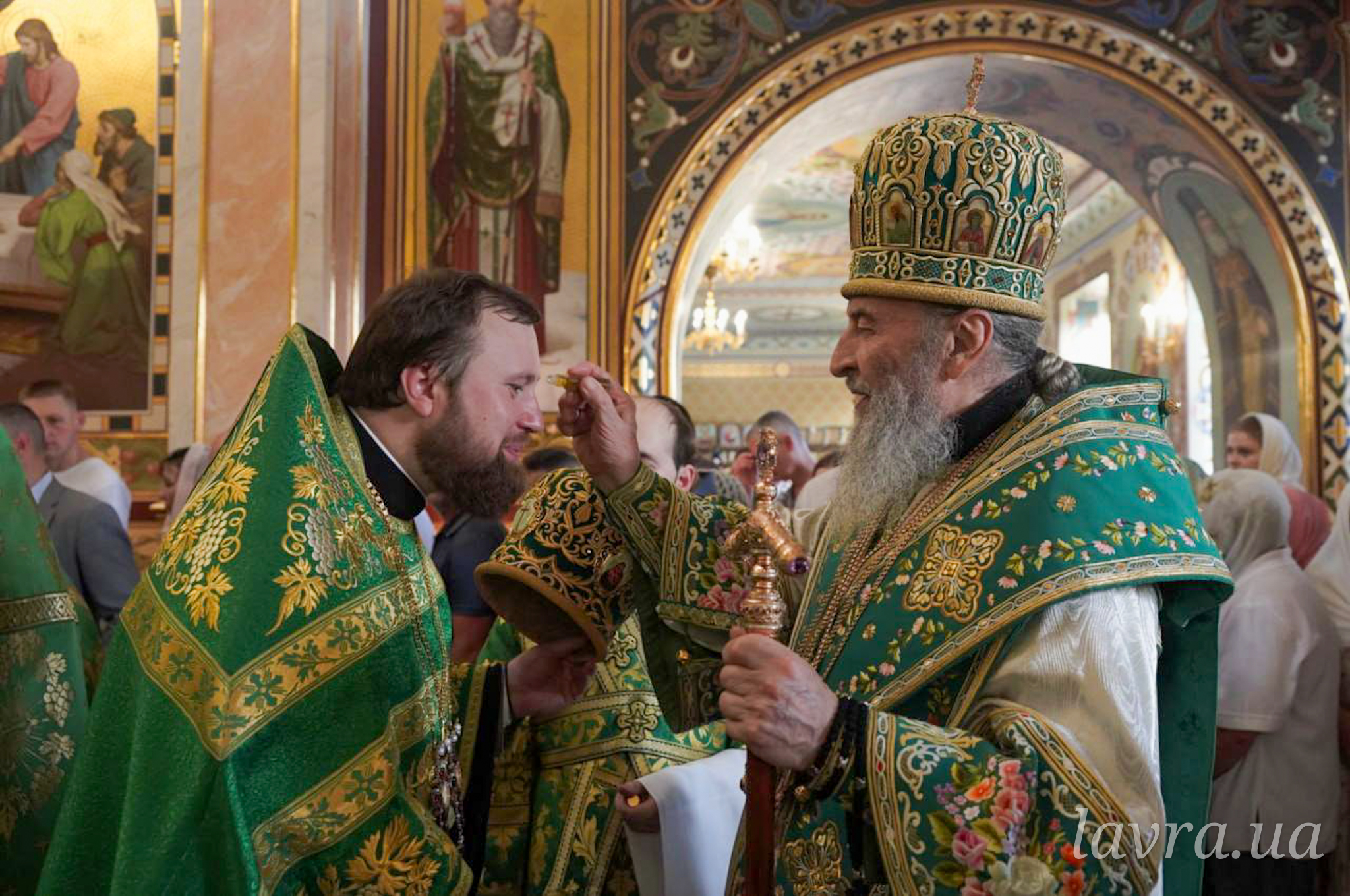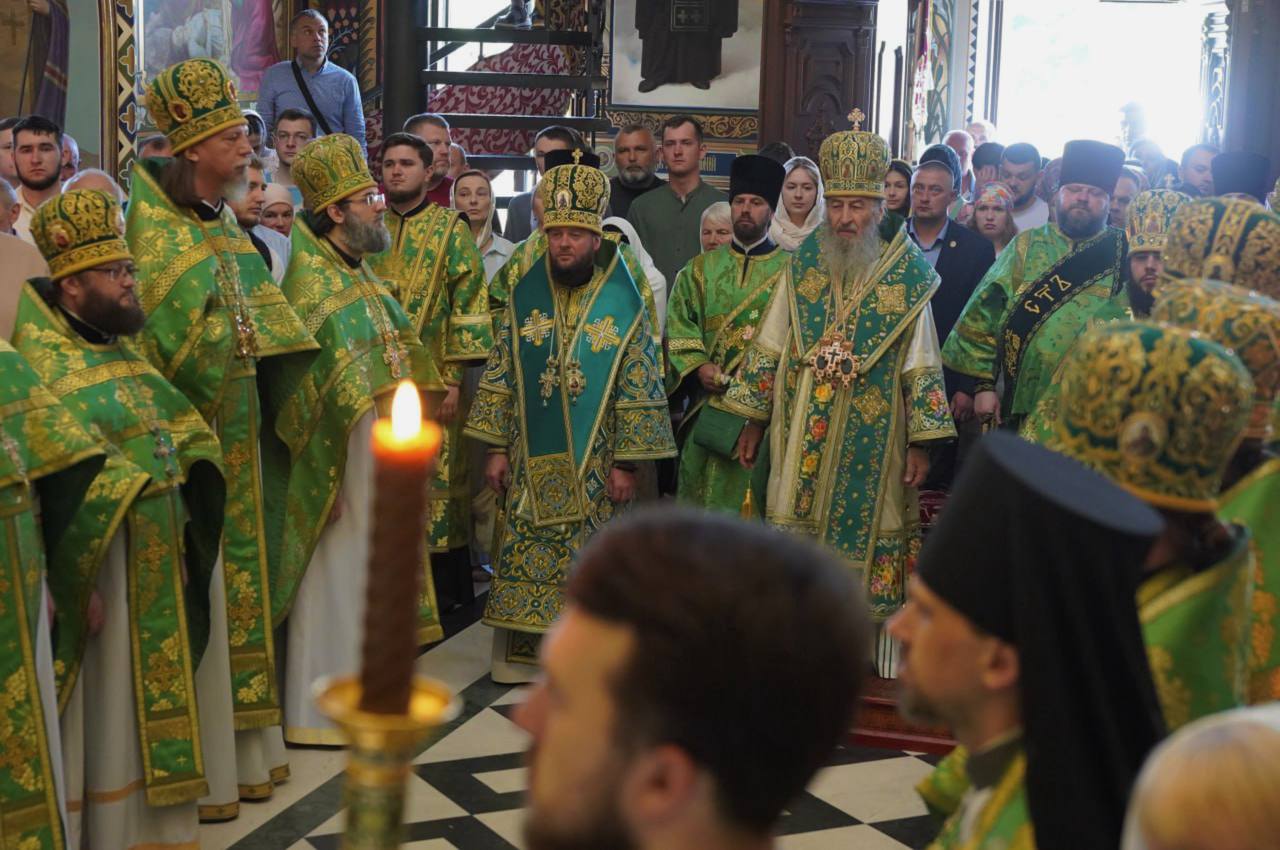 У сам день свята Святої Трійці Божественну Літургію з вечірньою у тому ж храмі звершив Священноархімандрит Святої Печерської обителі Блаженніший Митрополит Онуфрій у співслужінні преосвященних архієреїв, братії та гостей монастиря у священному сані.