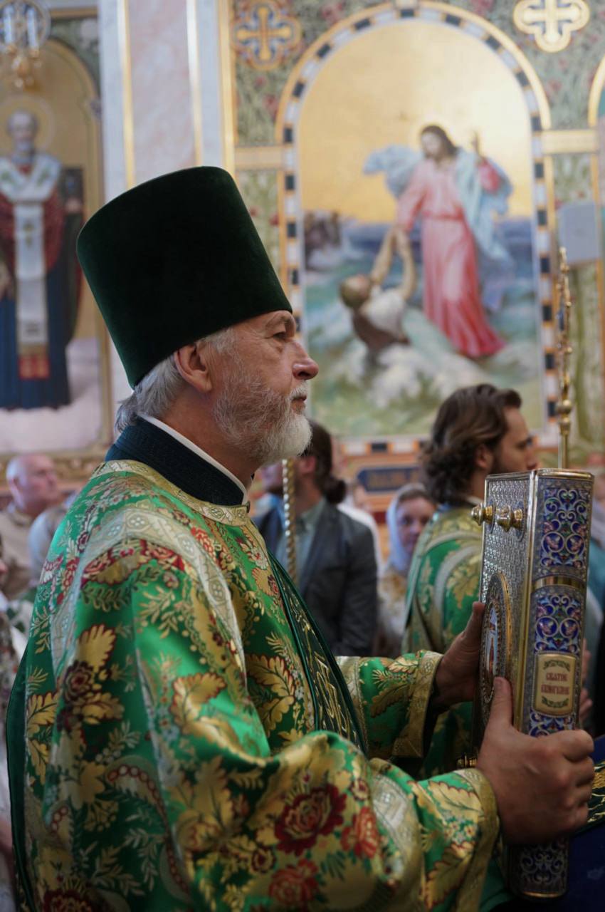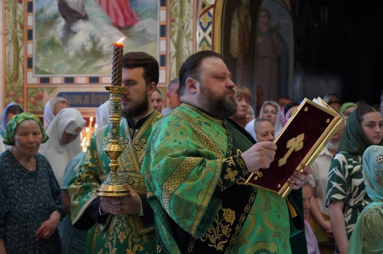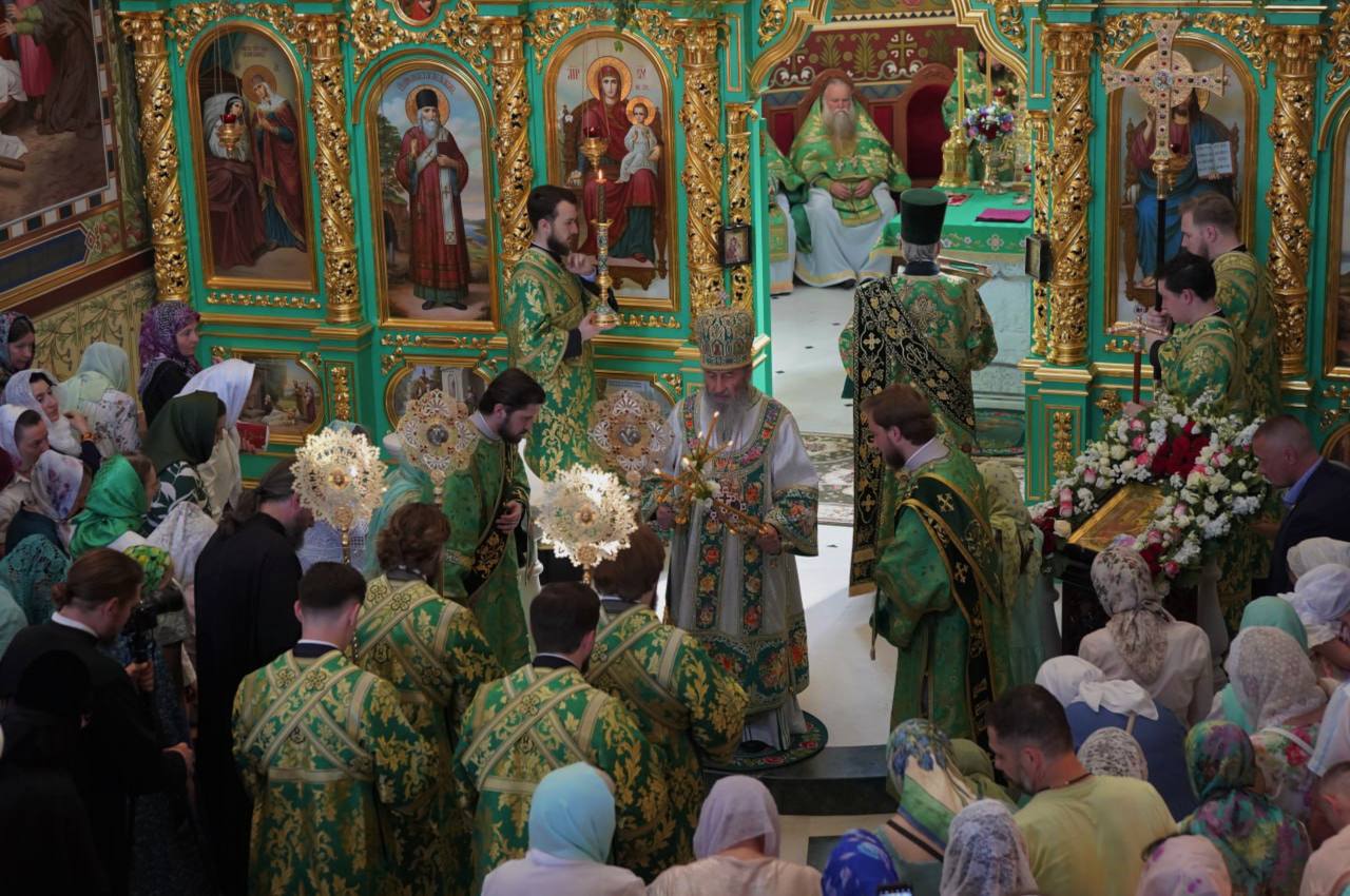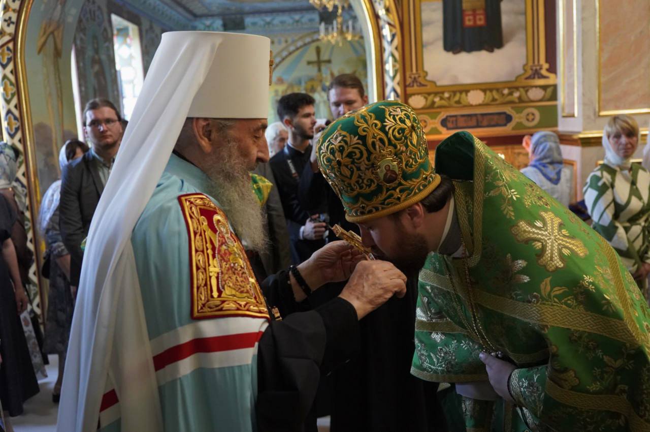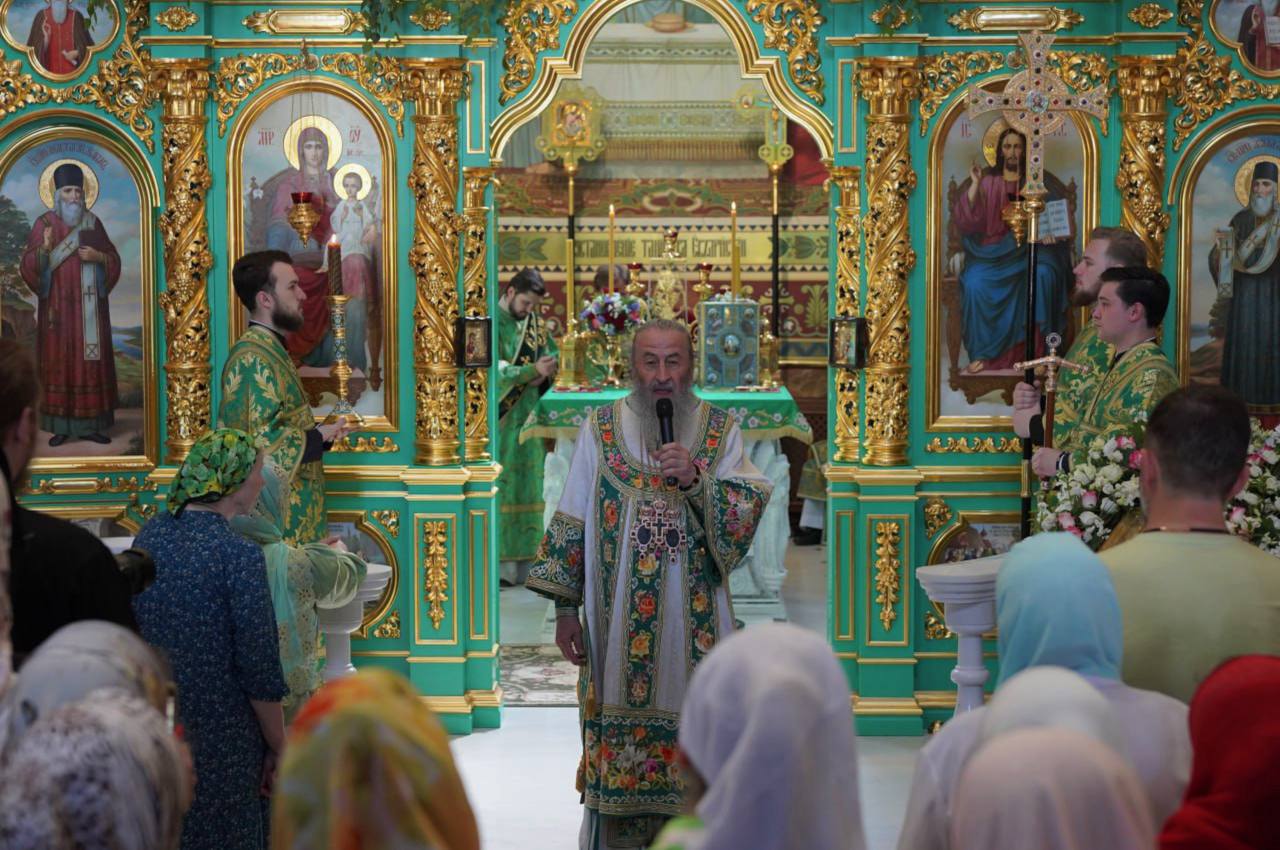 У сам день свята Святої Трійці Божественну Літургію з вечірньою у тому ж храмі звершив Священноархімандрит Святої Печерської обителі Блаженніший Митрополит Онуфрій у співслужінні преосвященних архієреїв, братії та гостей монастиря у священному сані.