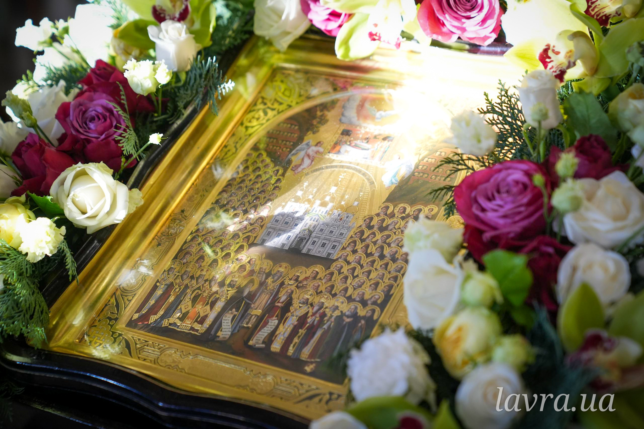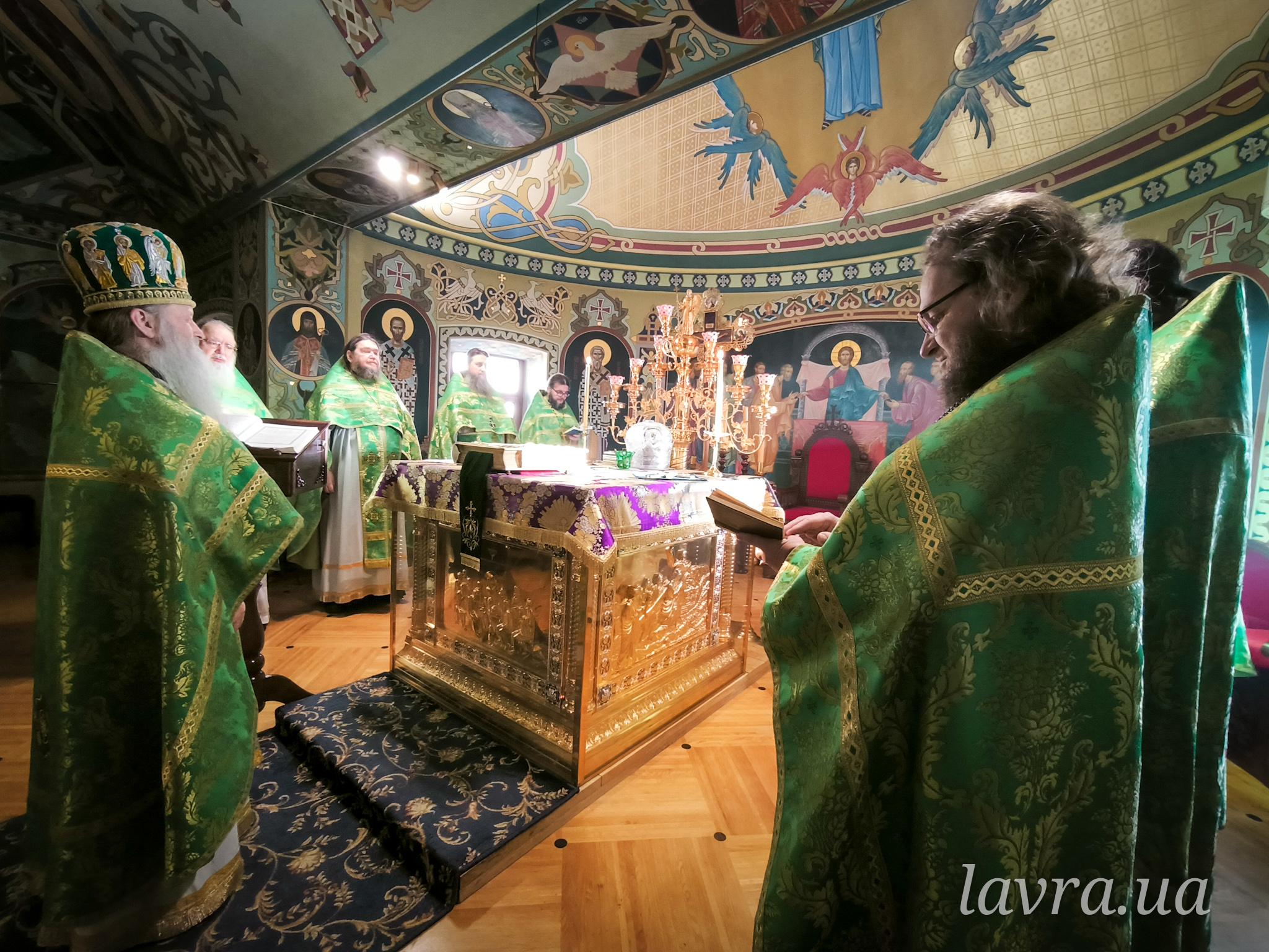 Після закінчення богослужіння були проспівані тропар, кондак і величання Собору всіх преподобних отців Печерських, а також прочитано молитву перед їхньою іконою. Після цього Блаженніший Митрополит Онуфрій подякував співслужившій братії за молитви, привітав причасників із прийняттям Животворящих Таїн Христових і звернувся до пастви з першосвятительським напутнім словом.