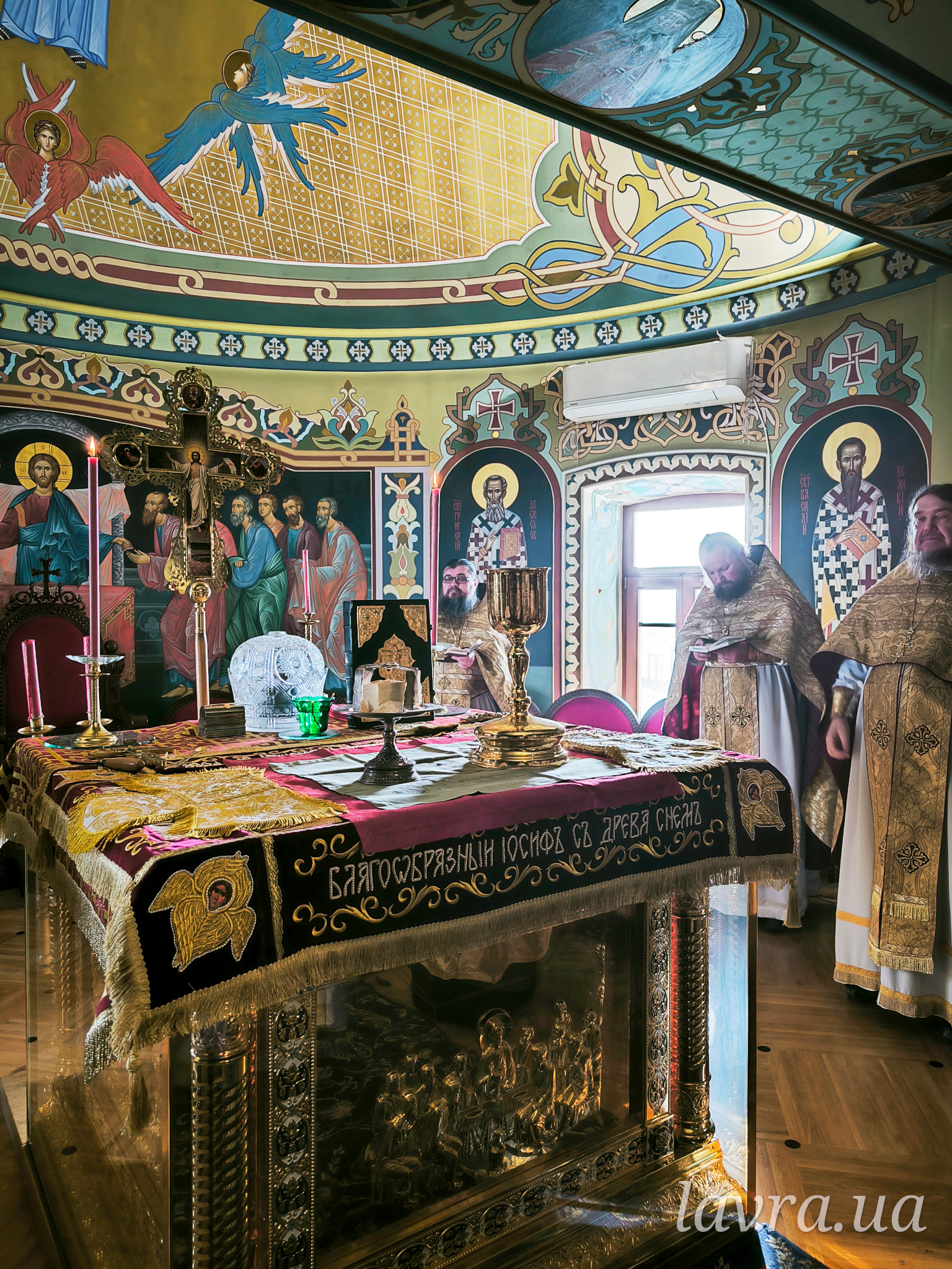 Божественну Літургію в цьому храмі очолив Священноархімандрит Києво-Печерської обителі Блаженніший Митрополит Київський і всієї України Онуфрій. Під час богослужіння Предстоятелю УПЦ співслужили єпископ Ірпінський Лавр, єпископ Бородянський Марк, а також братія і гості обителі у священному сані на чолі з благочинним архімандритом Іларіоном.