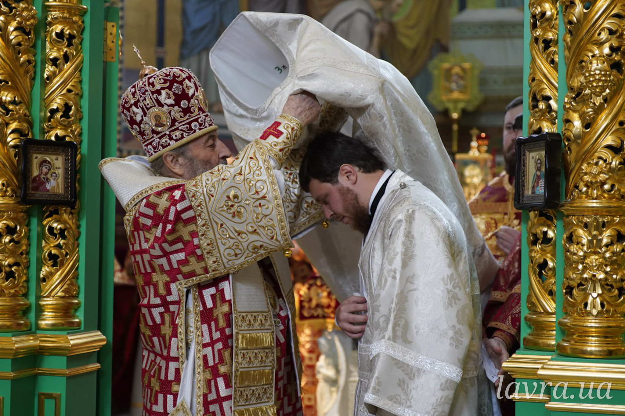 Після Великого входу було звершено ієрейську хіротонію насельника Лаври архідиякона Агафона.