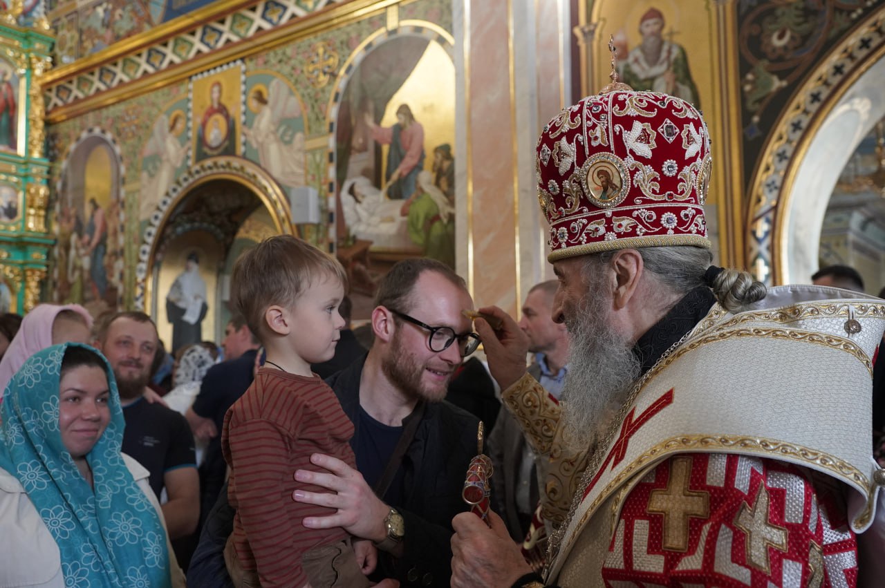 Після богослужіння Священноархімандрит Лаври Блаженніший Митрополит Онуфрій привітав усіх жінок з днем пам’яті Жон Мироносиць, причасників – з прийняттям Животворящих Христових Таїн і преподав Боже благословення усім, хто молився.