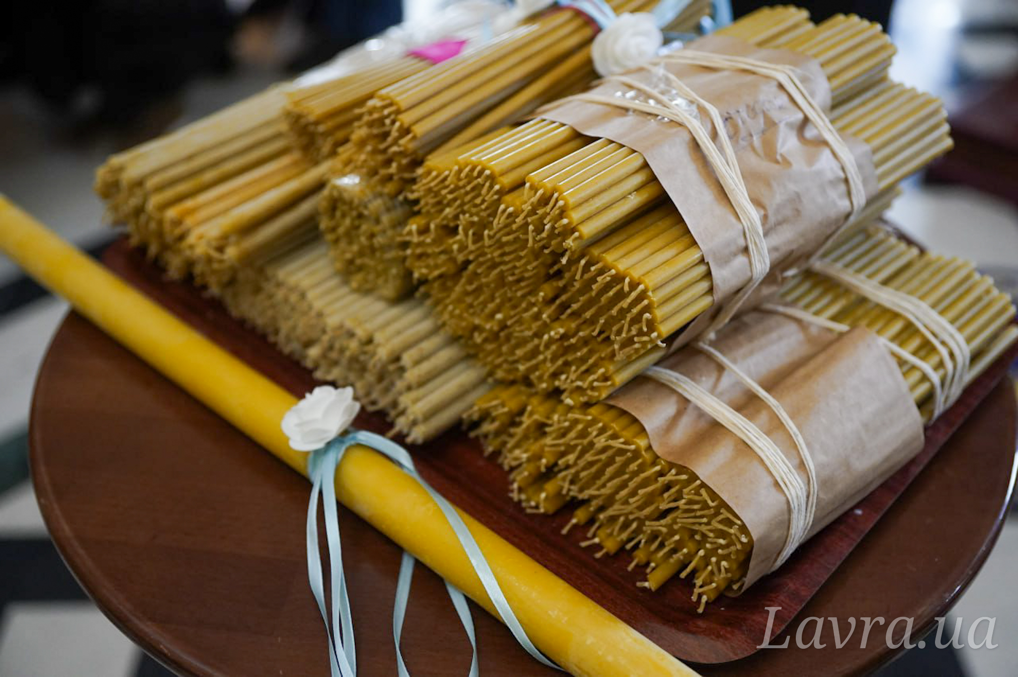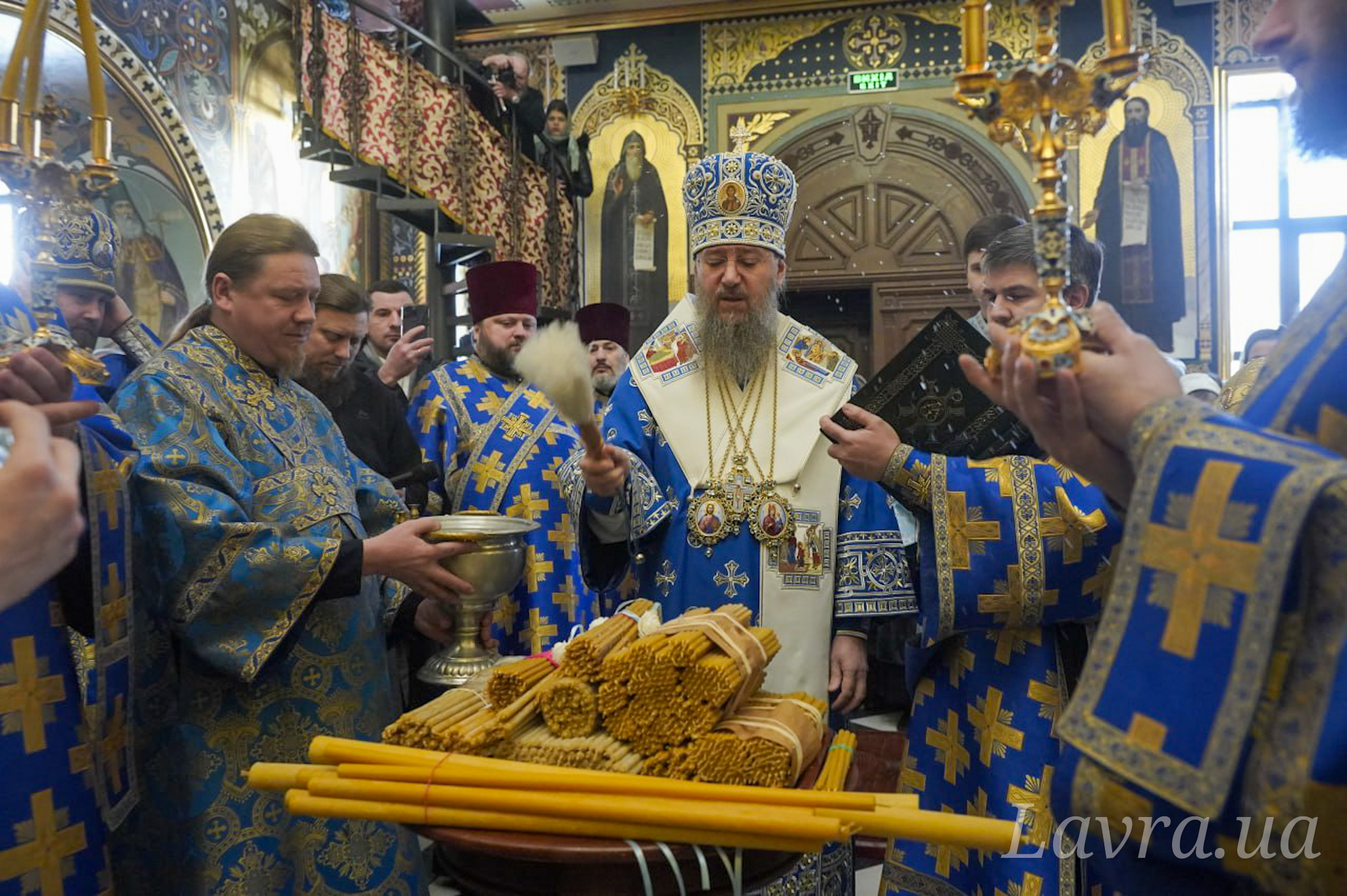 Перед початком богослужінь у храмах Лаври був традиційно звершений Чин освячення свічок.