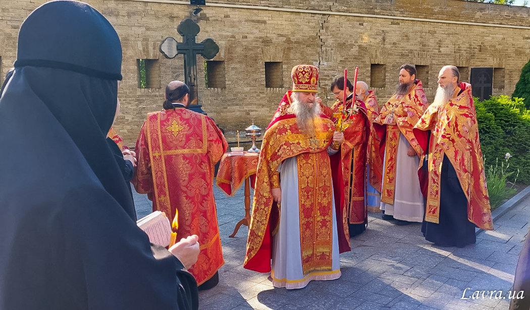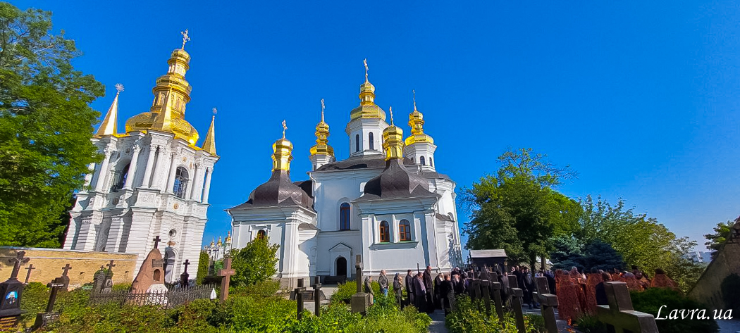В девятый день после Воскресения Христова, когда Православной Церковью установлено сугубое поминовение усопших, Божественную Литургию в Аннозачатиевском храме обители совершили братия Киево-Печерской Лавры во главе с духовником архимандритом Антонием.