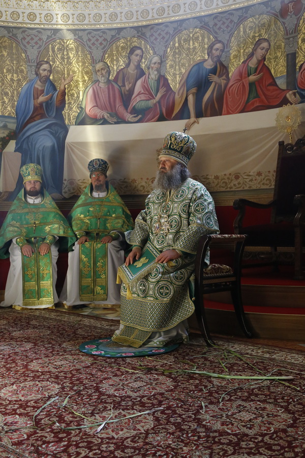 В своем архипастырском слове после чтения Евангелия владыка рассказал о значении праздника этого дня, о действии Святого Духа – Третьего Лица Живоначальной Троицы, заметив, что именно благодать Святаго Духа собрала всех присутствующих сегодня в храме, где звучат слова только о спасении человеческого рода.