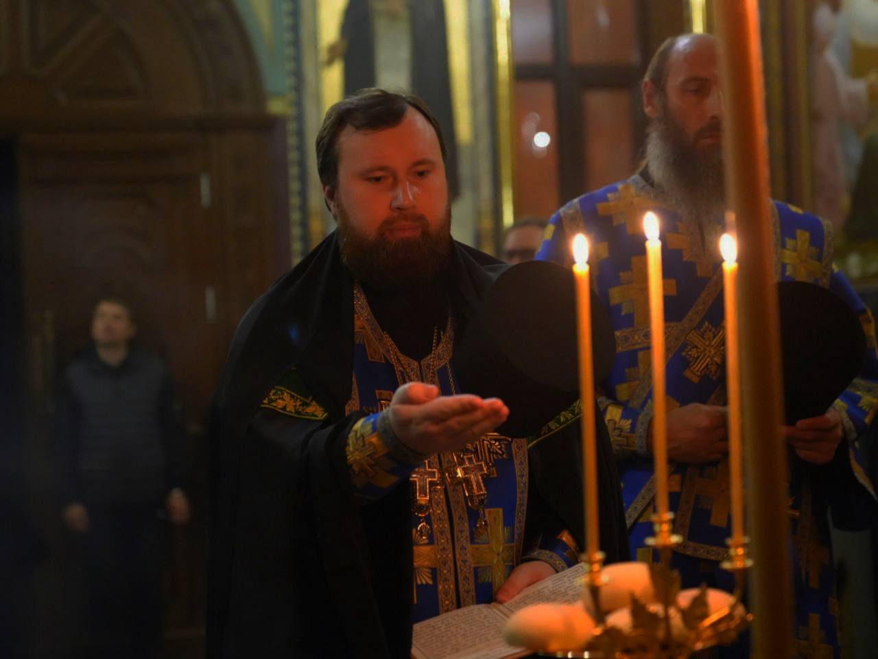 Накануне вечером всенощную с литией возглавил архимандрит Иларион в сослужении духовенства монастыря.
