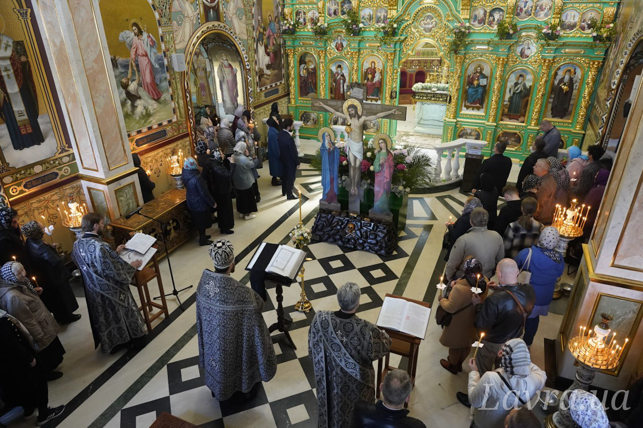 В Великую пятницу — день, посвященный воспоминанию Распятия Господня, который Церковь встречает в строгом посте, в храмах Киево-Печерской Лавры совершались богослужения, последование и песнопения которых наполнены великой скорби и вместе с тем предчувствием близкого Воскресения Христова.