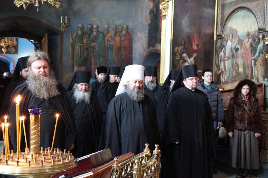 В третий день Святой Четыредесятницы в Крестовоздвиженском храме Киево-Печерской Лавры наместник обители митрополит Павел молился за великопостной утреней, часами, изобразительными и совершил первую в нынешнем году Литургию Преждеосвященных Даров. Его Высокопреосвященству сослужили епископ Макаровский Иларий и насельники монастыря в священном сане.
